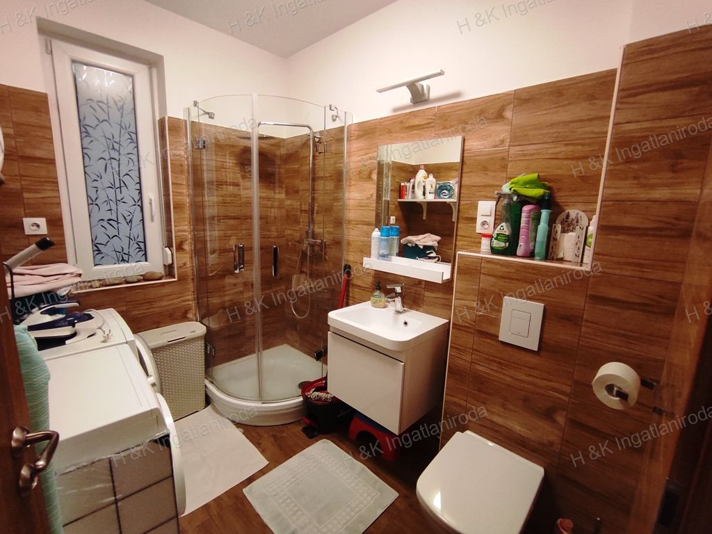 A lakáshoz tartozik egy 33 nm-es, kétállásos garázs, valamint az épület előtt is van lehetőség parkolni.