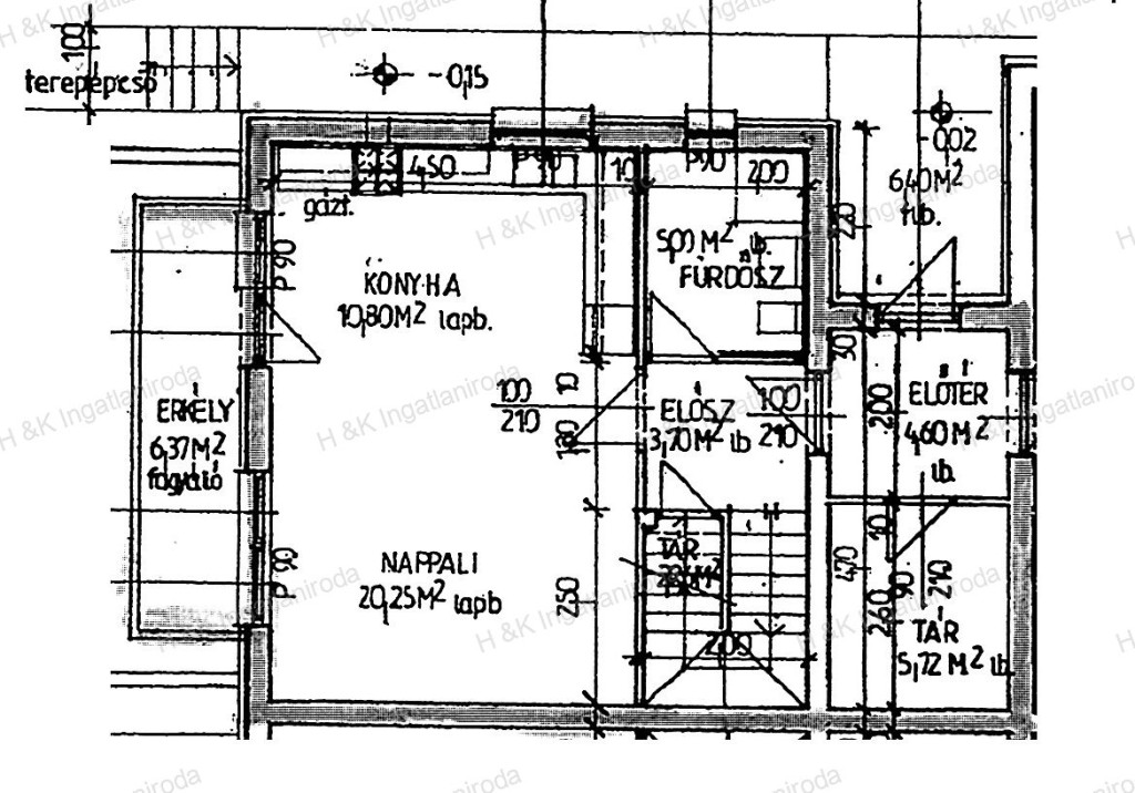 A lakás 96,37 nm lakóterületű + 6,37 nm terasz +33 nm garázs, nappali + 3 szobás, duplakomfortos.