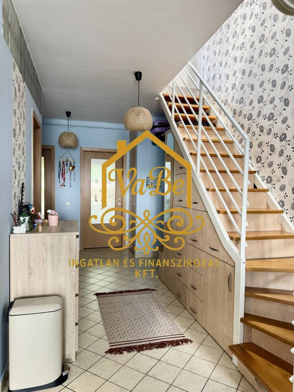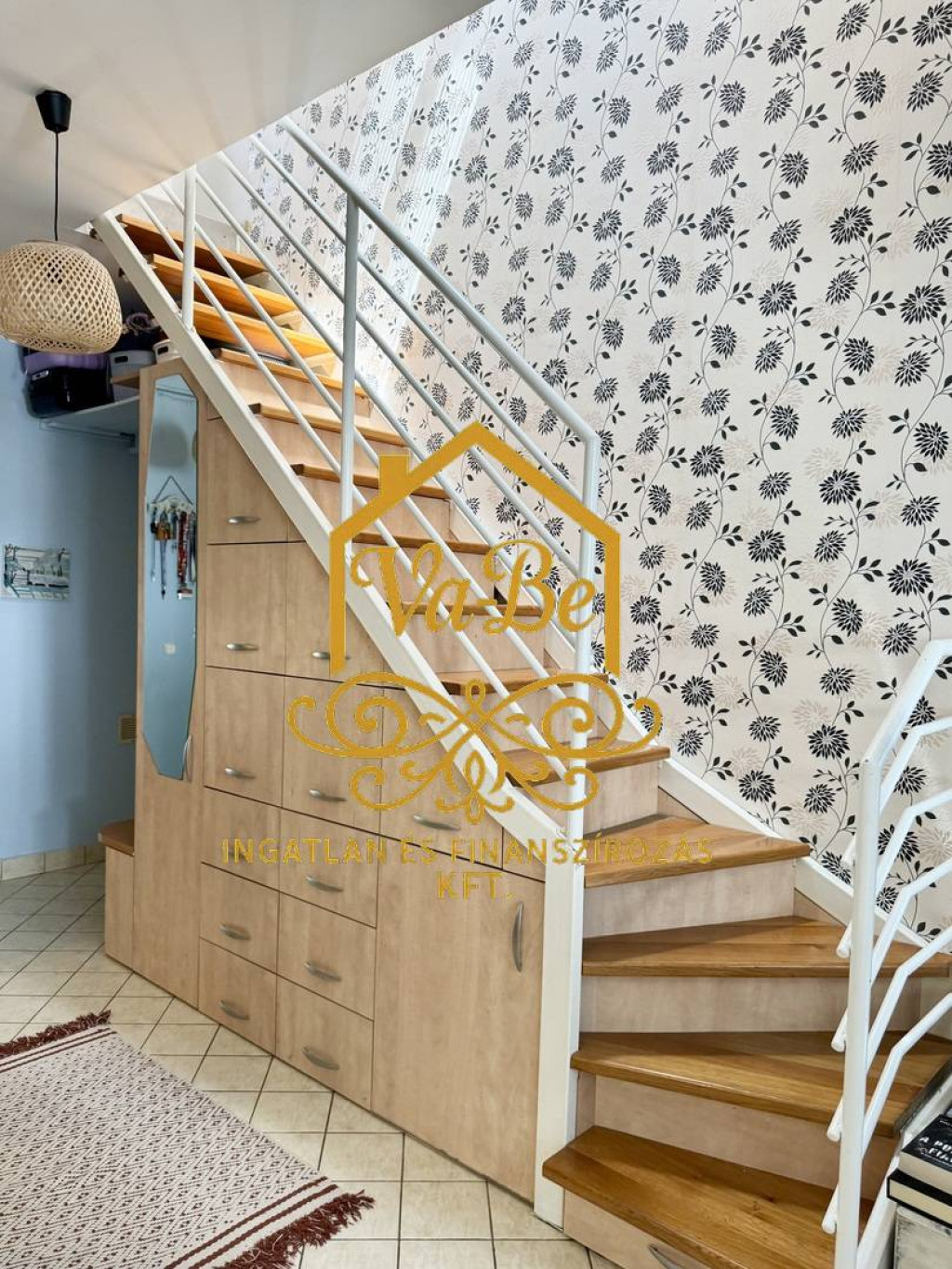 A megfelelő helykihasználás érdekében a lépcső alá praktikus beépített szekrény került, akasztós, polcos és fiókos rekeszekkel. Az előszobában, valamint a fürdőszobában is található egy-egy nagyobb méretű mindent elnyelő gardróbszekrény. Ezek, valamint a konyhaszekrény és a beépített konyhagépek a vételár részét képezik.