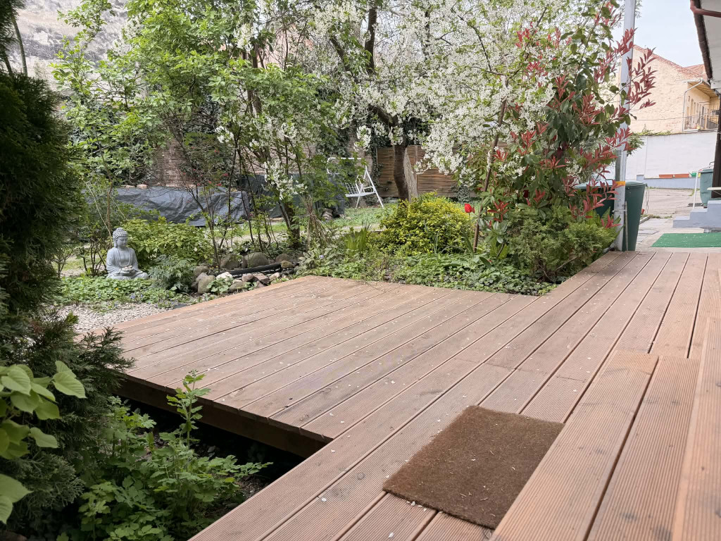 • Zöld oázis a város felett: A lakáshoz egy kb. 40 m²-es, gondosan ápolt saját kert tartozik. A másfél éve épült fa teraszt szép fák és dús növényzet öleli körbe, intimitást és hűsítő árnyékot adva a nyári napokon. A kerti tó csobogása már csak a ráadás a teljes kikapcsolódáshoz.