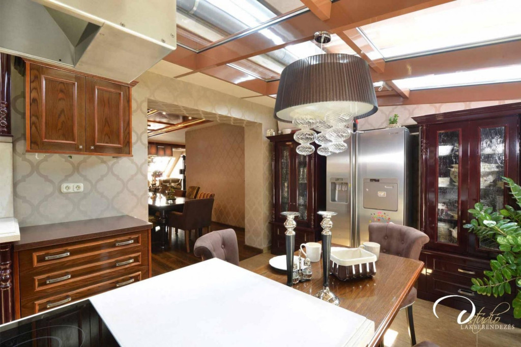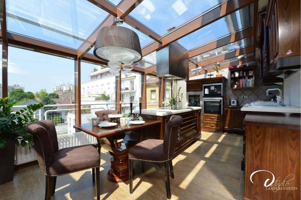 A lakás egyik legimpozánsabb része a tágas, rendkívül világos, nyugati tájolású konyha, amely egész nap kellemes természetes fényt kap. A csendes, udvarra néző, 18,5 m2-es erkély tökéletes hely a pihenésre és kikapcsolódásra.