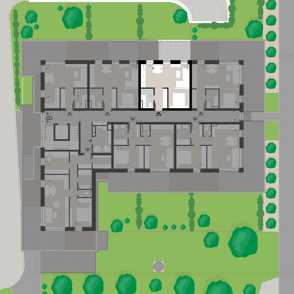 Az BL303 lakás a 3. emeleten található, 36,99 m2 területű és 10,19 m2 erkéllyel rendelkezik. Az ára 43.770.000 Ft.