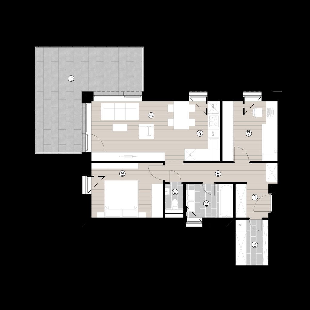 Az BL307 lakás a 3. emeleten található, 64,3 m2 területű és 21,7 m2 erkéllyel rendelkezik. Az ára 77.159.775 Ft.