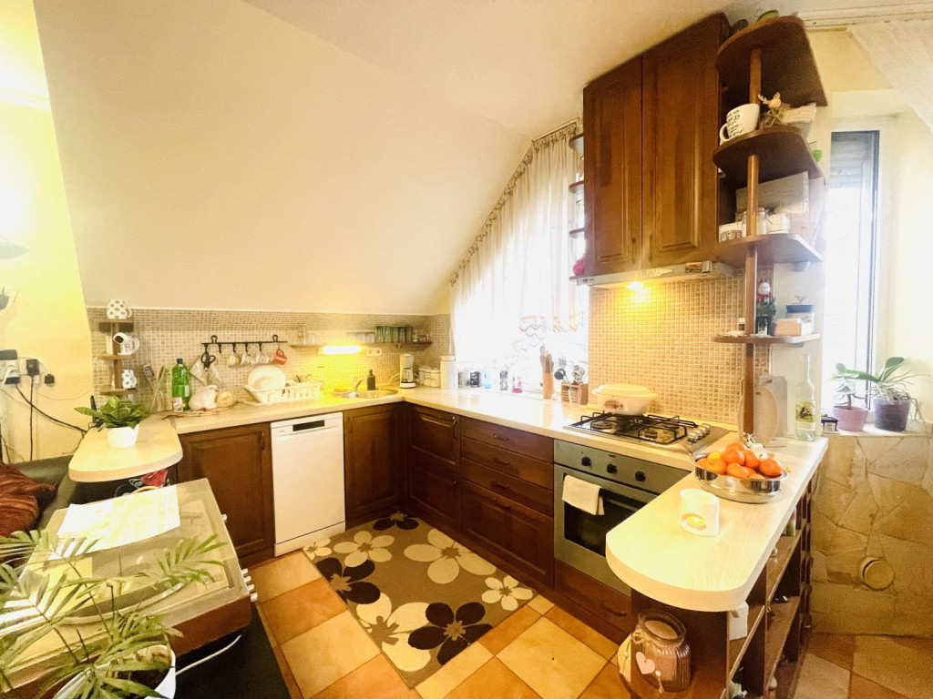 Győrménfőcsanak rendezett, jól megközelíthető, csendes utcájában kínáljuk eladásra ezt a 662 m²-es telken elhelyezkedő, négylakásos társasház első emeletén található, tetőtér kialakítású, 74 m² nettó (82 m² bruttó) alapterületű, 3 szoba + étkező-konyha-nappali elrendezésű ingatlant, 6 m²-es erkéllyel, az udvarban fedett gépjárműbeállóval és zárt tárolóval.