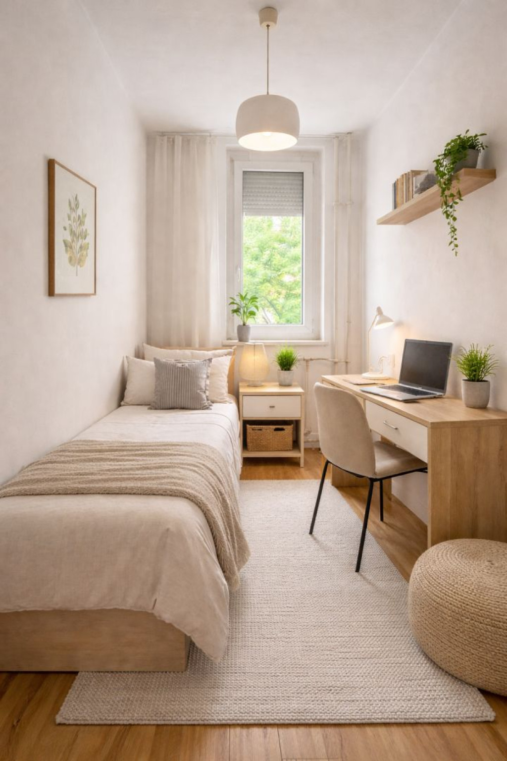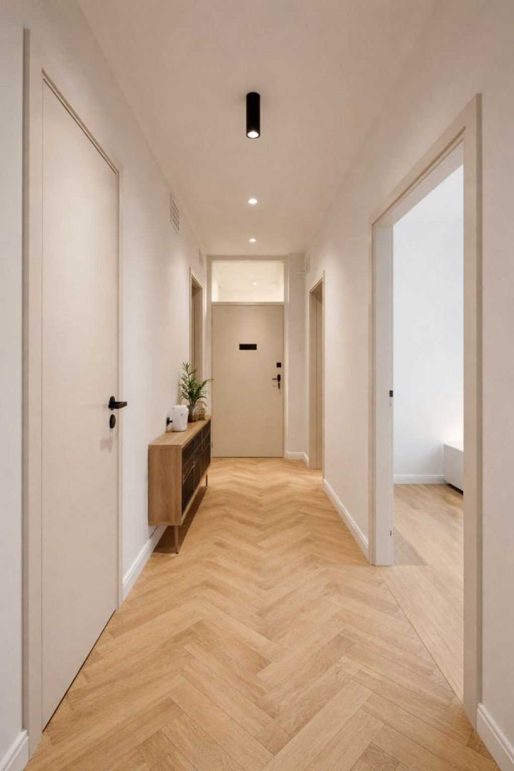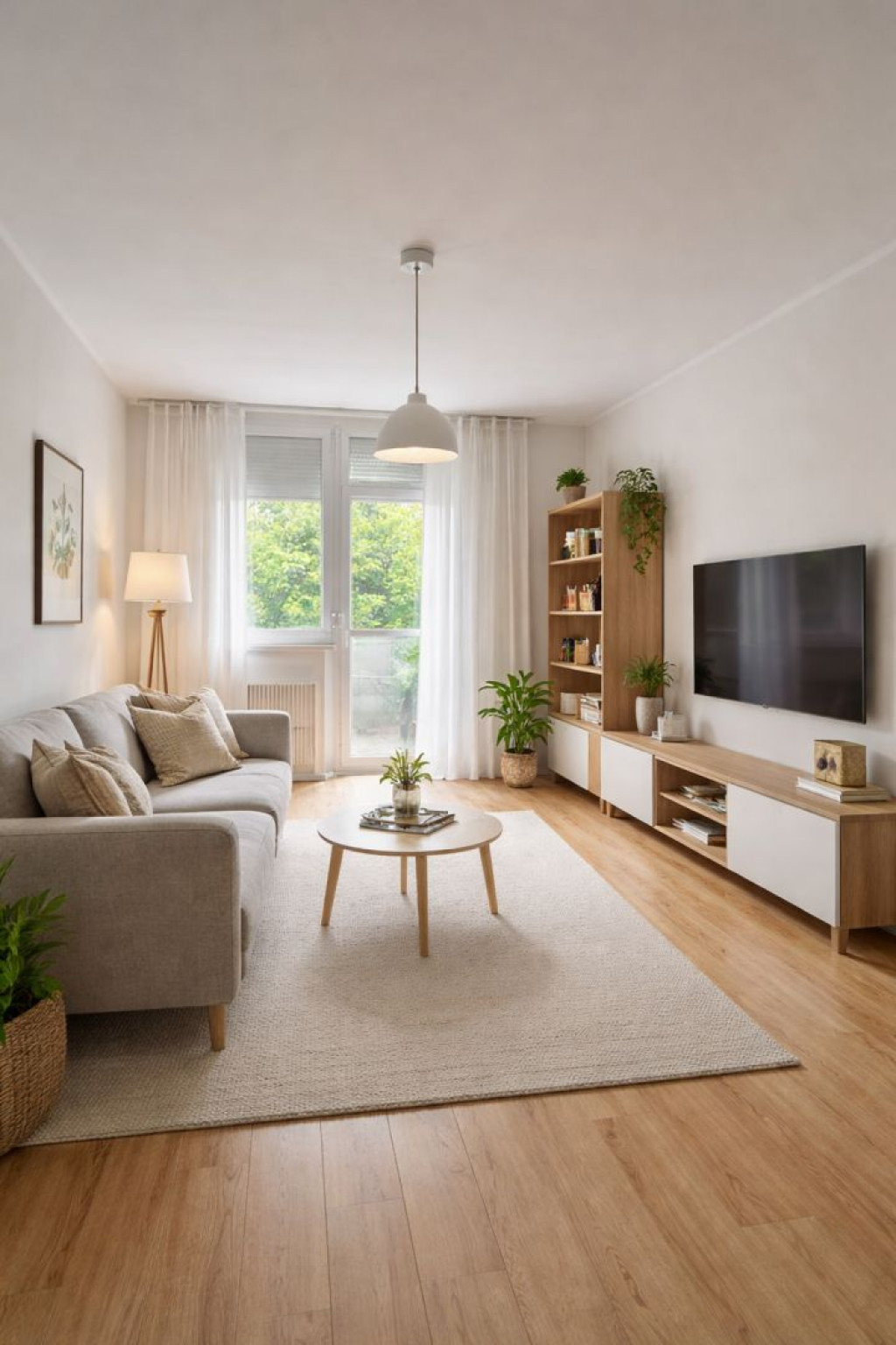 Elrendezése praktikus: konyha, egy kisebb és egy nagyobb szoba amelyek könnyen variálhatóak, spájz és fürdőszoba.