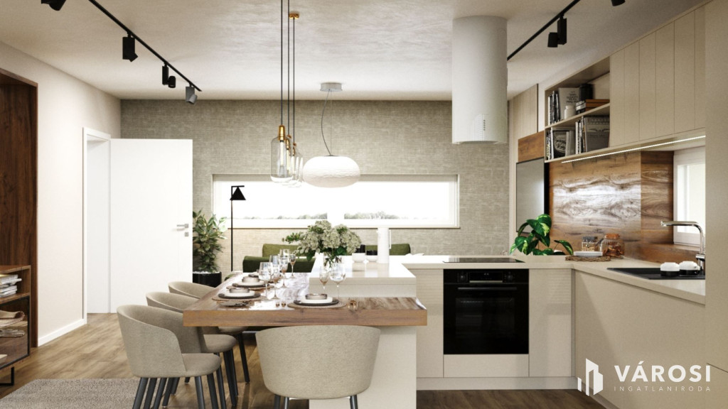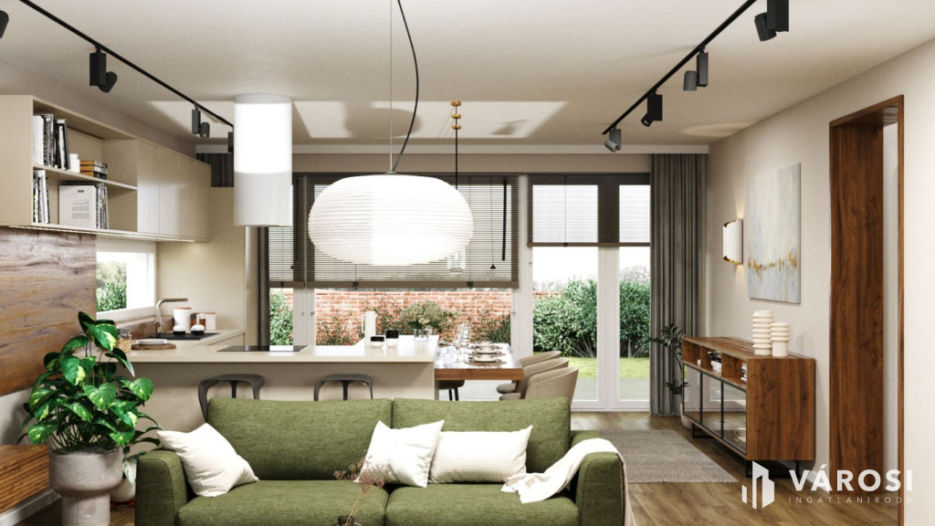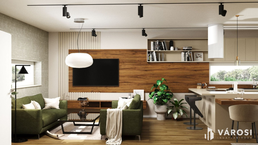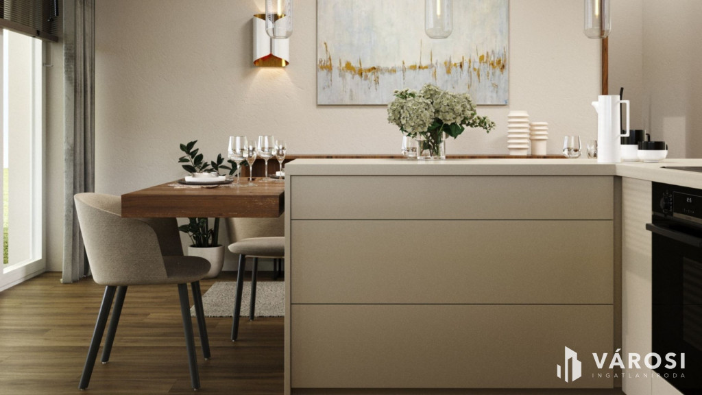 A hirdetésben szereplő látványtervek jól mutatják, milyen otthonosan berendezhető, jól élhető lakás lesz belőle.