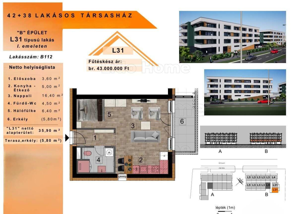 Lakásadatok: B épület 1. emelet L31 112 lakás