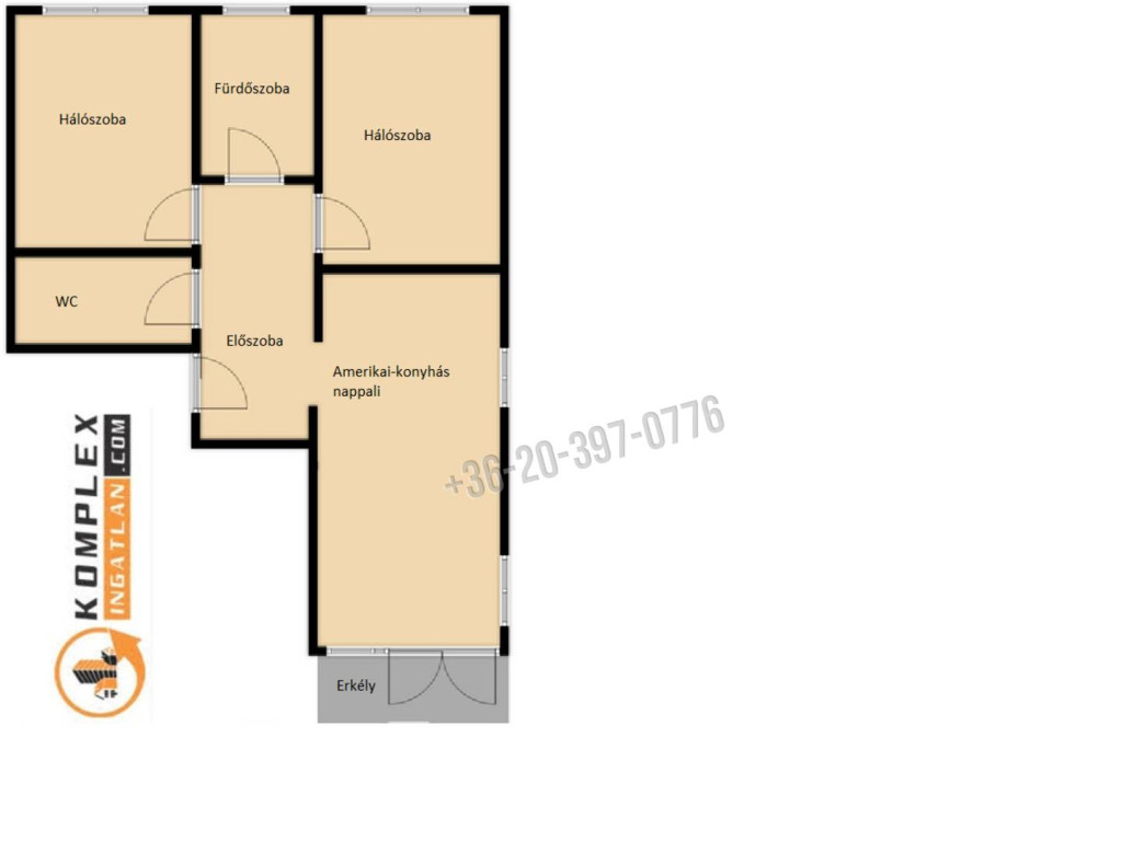 - Szobaszám 2 + 1 fél
