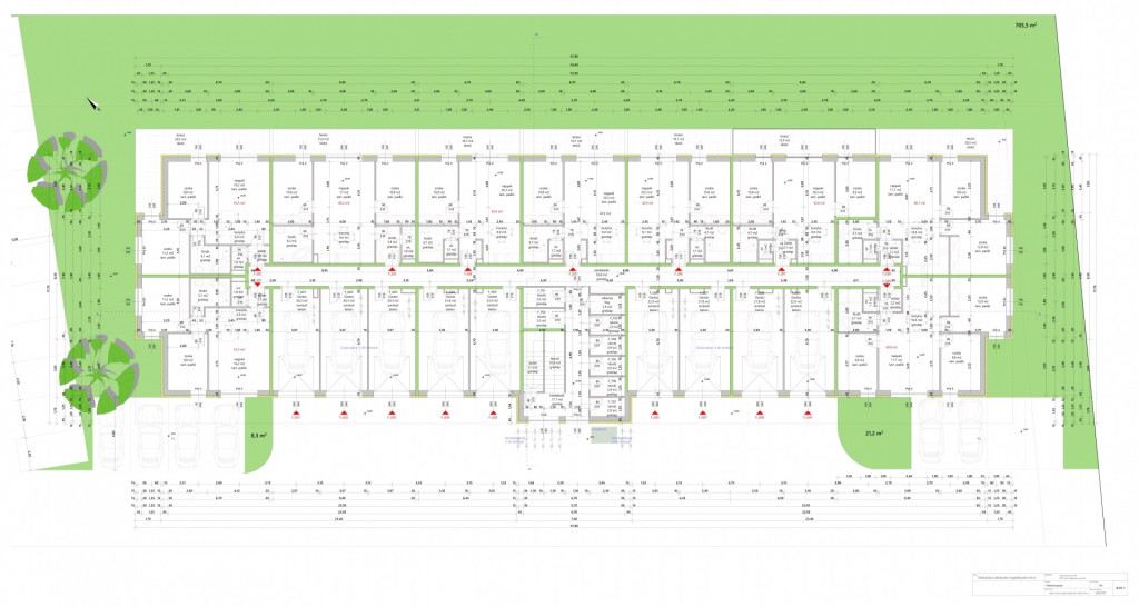 A földszinti lakások kertkapcsolattal és terasszal, az emeleti lakások erkéllyel rendelkeznek.
