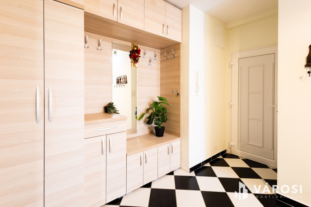A lakáshoz a földszinten közös kerékpártároló és saját zárható tároló szekrény is tartozik.