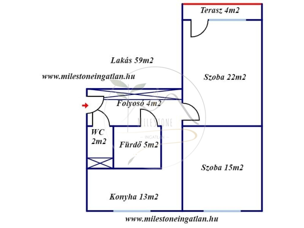 - Alapterület 59 m2