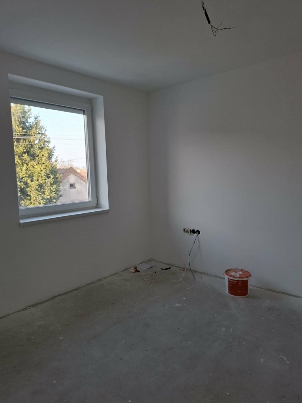 Sarki egyedi kialakítású, 2 szobás nagy nappalis világos nagy terekkel rendelkező 89 m2 es emeleti hálószobákkal, szenkcionált garázs kapuval, különleges egyedi üvegezésű korláttal terasszal.