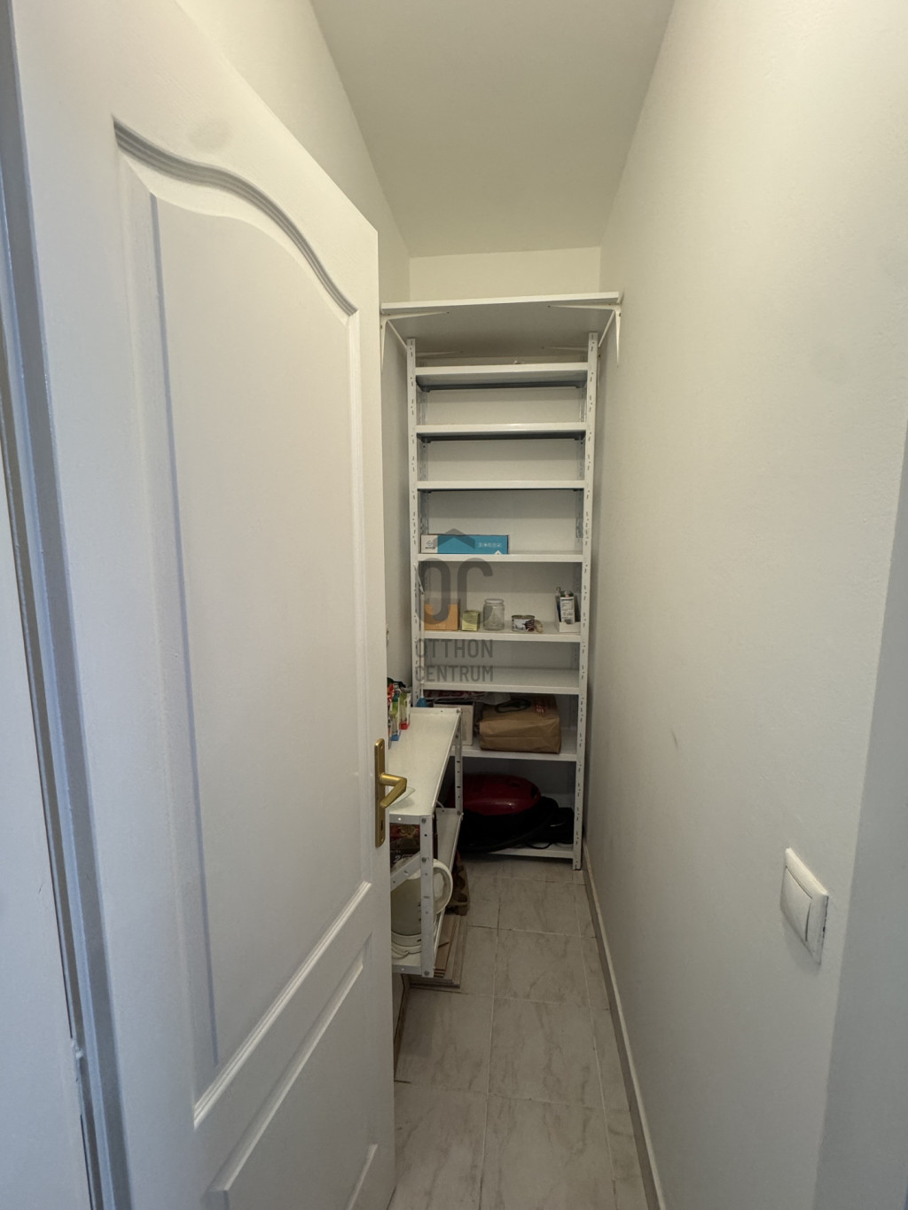A beépített bútorok és szekrények maximálisan kihasználják a teret, így a lakás nemcsak esztétikus, hanem praktikus is.