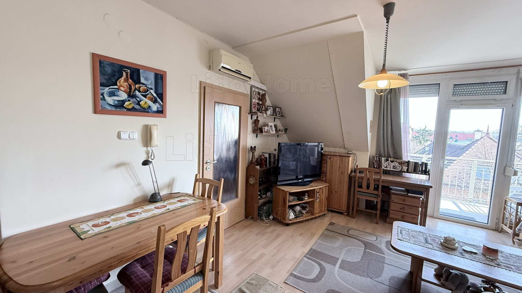 A lakás nappali–konyha–étkező egybenyitott térrel, külön hálószobával, kádas fürdőszobával, külön WC‑vel és előtérrel rendelkezik. A nappaliból nyíló erkély hangulatos városi panorámát kínál, amely tovább erősíti a belvárosi életérzés kényelmét. A fűtést és a meleg vizet kondenzációs kombi gázkazán biztosítja, a hűtést klíma. A külső nyílászárók korszerű műanyagból, a belsők fából készültek. A lakás teljes bútorzattal és háztartási gépekkel együtt, azonnal birtokba vehető.