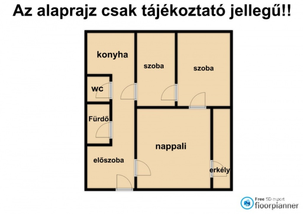 - nappali, 2 db szoba,fürdő,wc,konyha,előtér