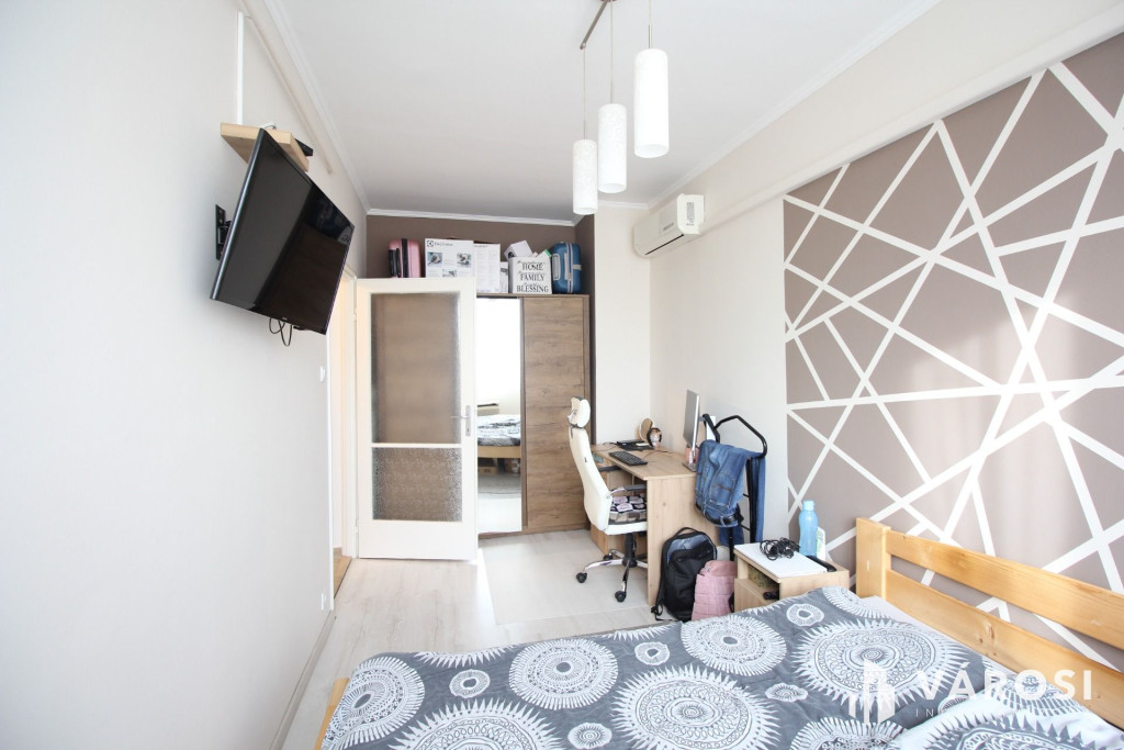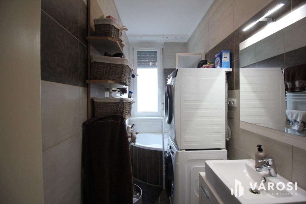 A lakás 2016-ban lett felújítva, de a lamináltpadlót 2 éve rakták le. Új konyhabútor, új fürdőszoba, itt sarokkád lett beépítve. Ablakcsere, vízvezeték csere szintén, a villanyvezeték egy része rézre lett cserélve. Szobákban laminált padlót raktak le a többi helyiségben hideg burkolatot.