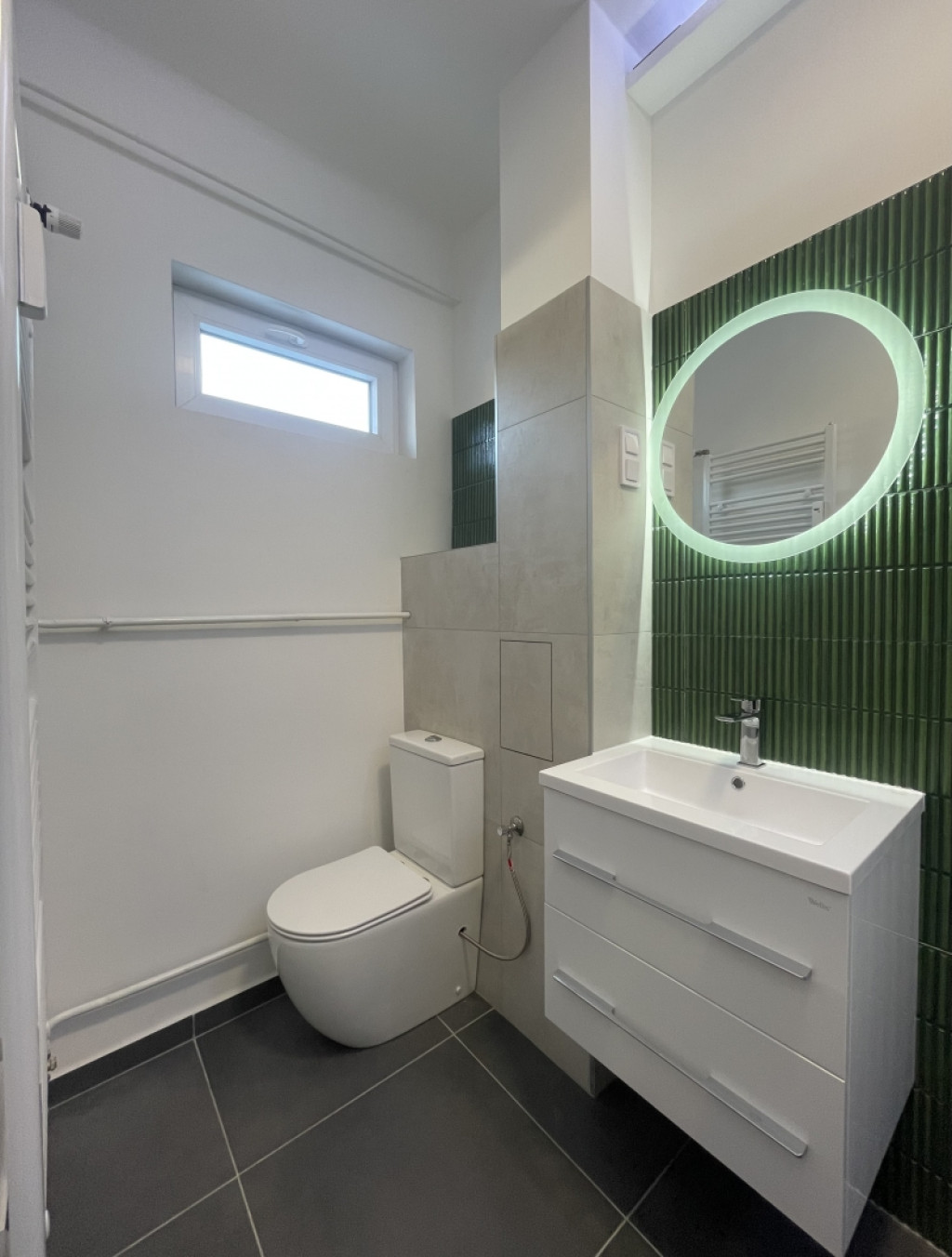 -fürdőszobában exkluzív szaniterek, mágneses, csempéből kivágott rejtett szervizajtó