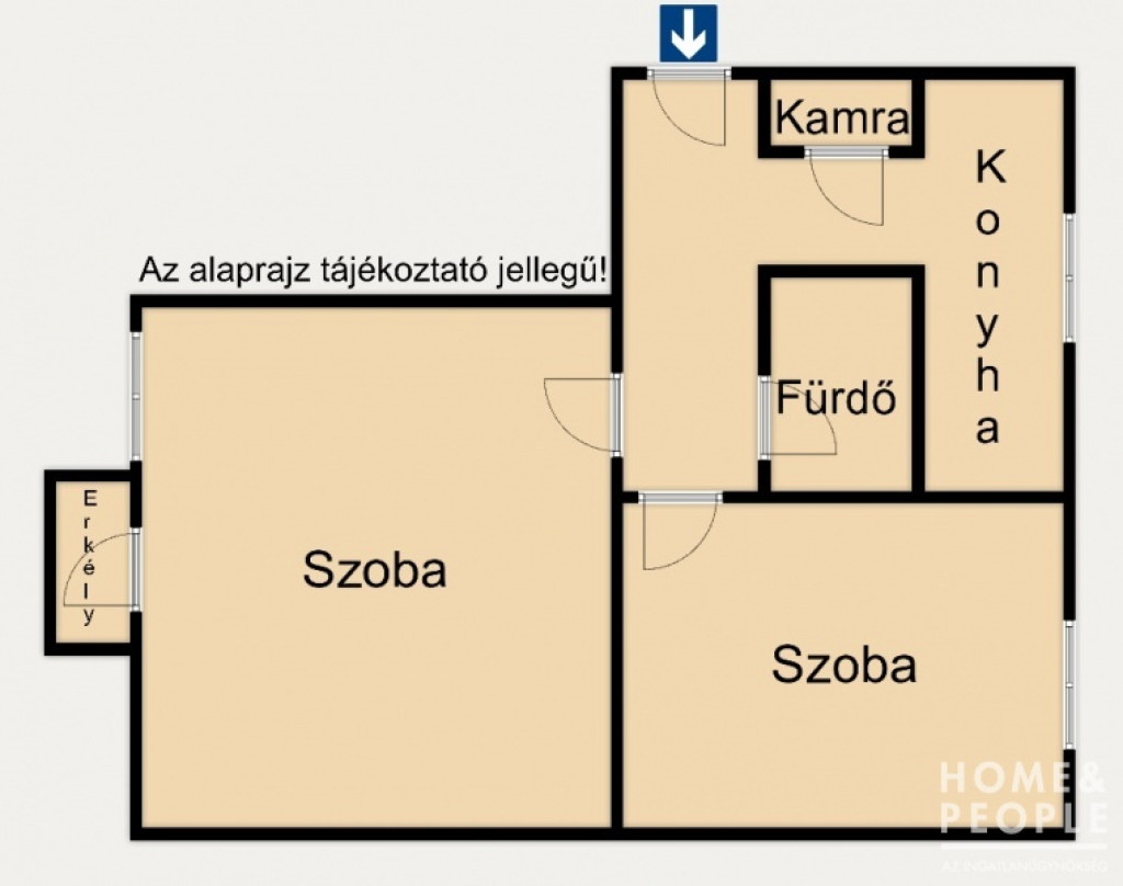 - 2 különnyíló szoba, fürdő, konyha, kamra, erkély