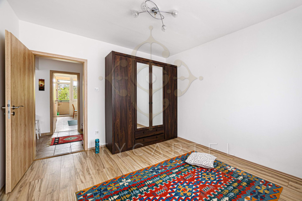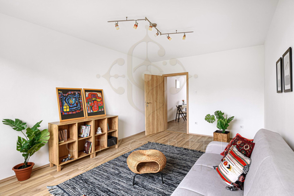 Világos, jól átgondolt elrendezés: tágas nappali, hálószoba, konyha-étkező, valamint egy kisebb szoba (gyerekszoba vagy dolgozó). A loggia a kis szobából nyílik.