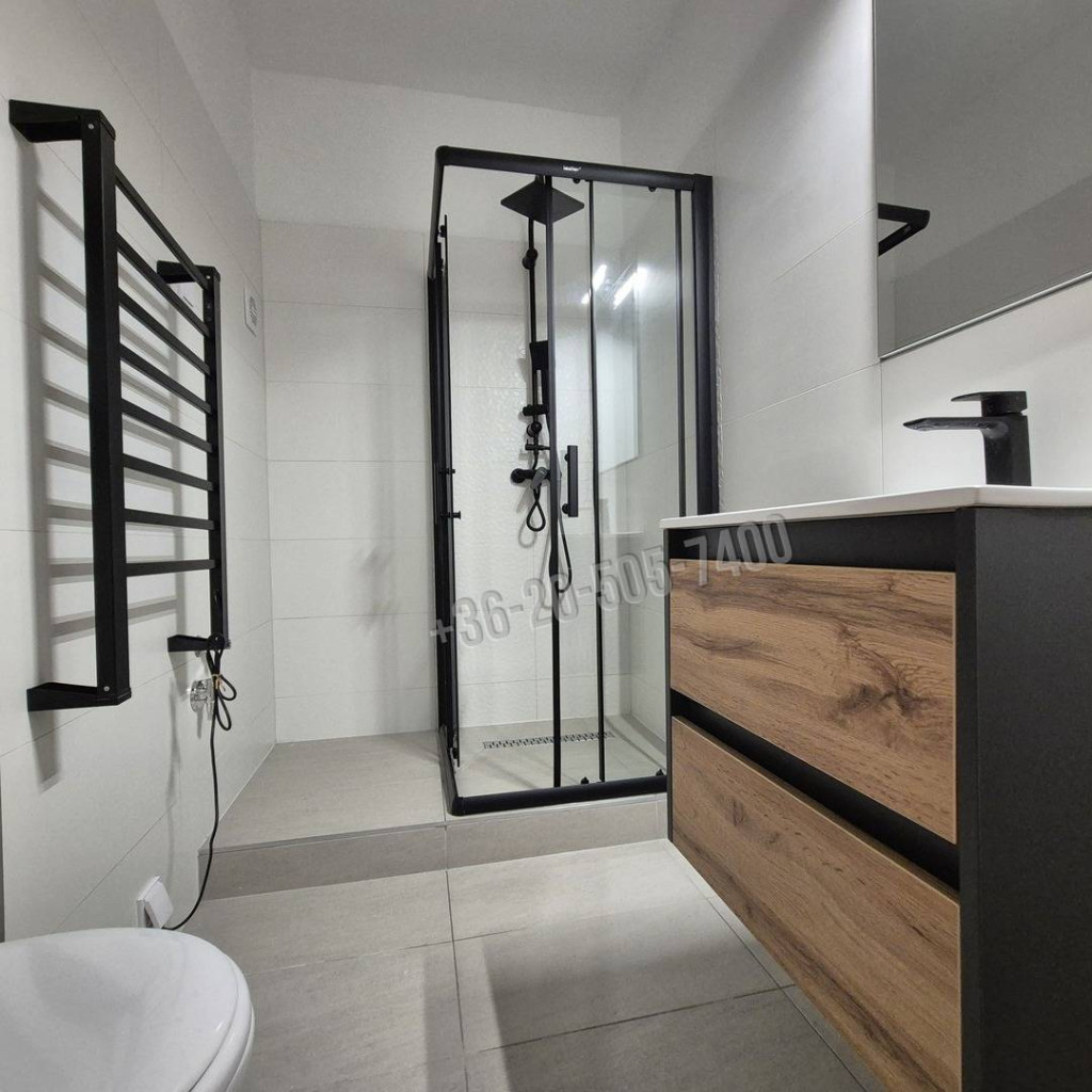 A lakásokban laminált padló burkolat került lerakásra, a fürdőszobákban mészkő mintájú csempe, fiatalos fekete szaniterek és zuhanyzó lett beépítve. A mosógép kiállás kiépítésre került. A konyhákban gázfőzőlap, villanysütő, szellőzőcsőbe kötött szagelszívó, valamint a hűtő számára kialakított hely található.