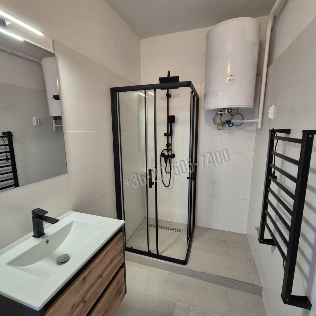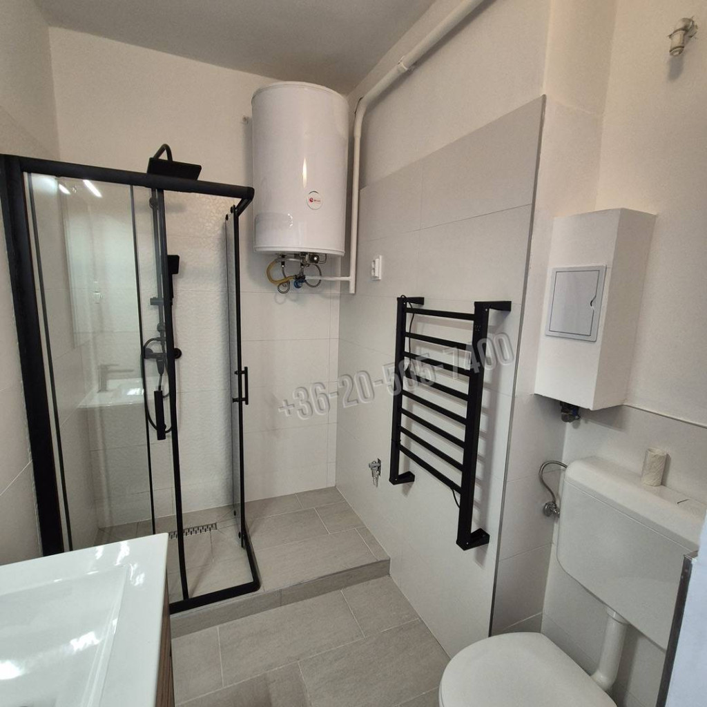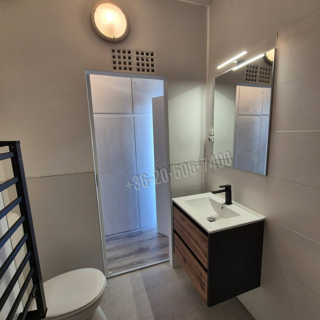 Két teljes értékű szoba került kialakításra, így külön nappali is helyet kapott. A lakásból nyílik egy 4 m²-es tároló vagy gardrób helyiség, valamint a lakás része egy 2 méter hosszú, 60 cm mély, felújított beépített gardróbszekrény is. A fürdőszobában zuhanyzó, WC, kézmosó és elektromos törölközőszárító található, a mosógép kiállása megoldott. Klímának az elektromos vezeték kiépítésre került mindkét szobában.