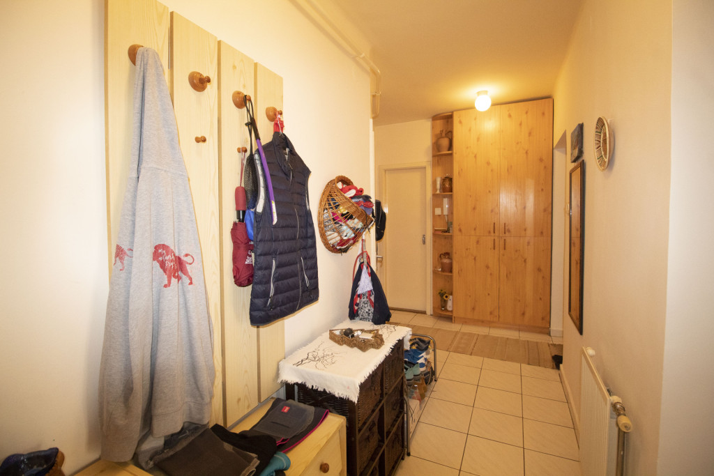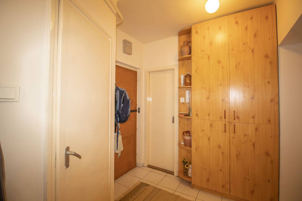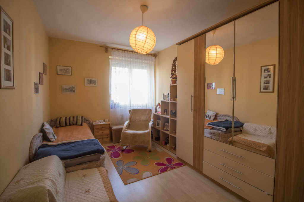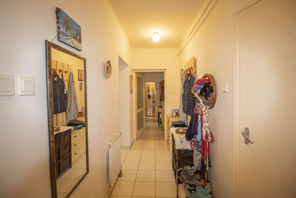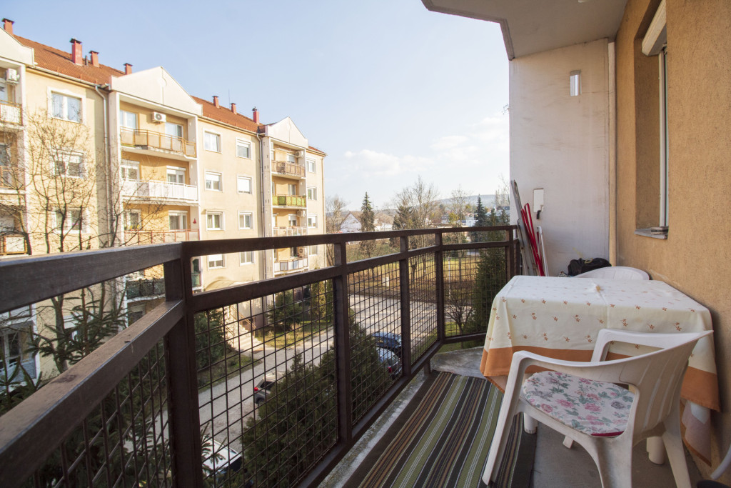 Elrendezése családoknak is kiváló, tágas előtérbe érkezünk meg, mindhárom szoba önállóan megközelíthető az előtérből, külön étkezővel rendelkezik a lakás, a wc és a fürdőszoba külön helyiségben található, az erkély is kényelmes méretű.