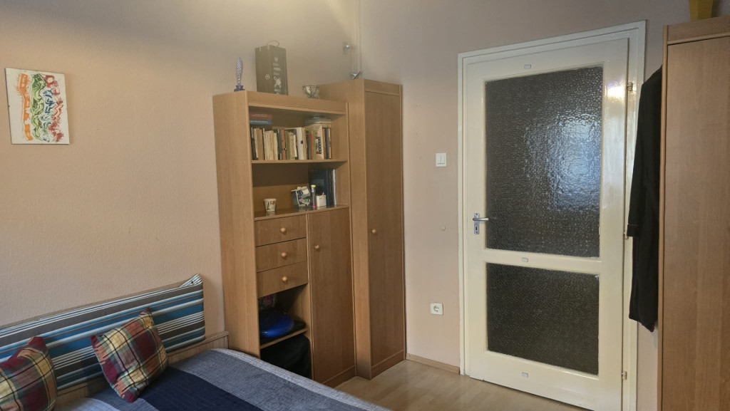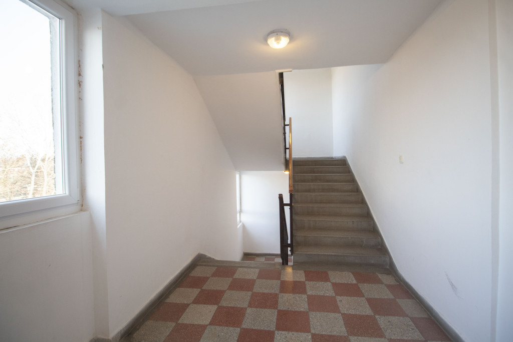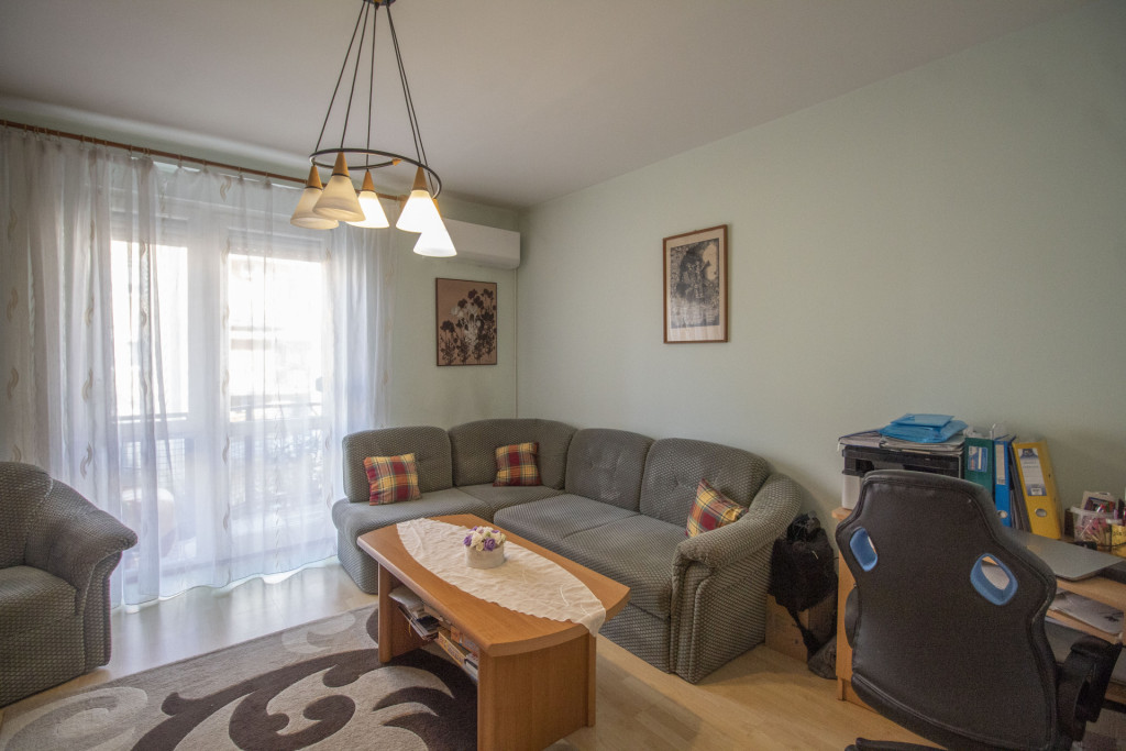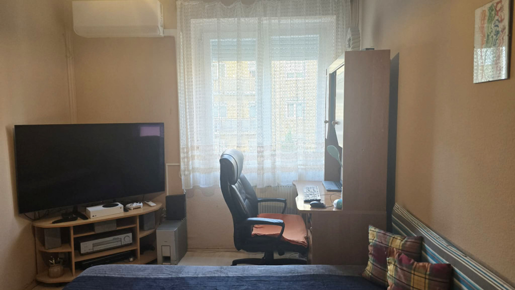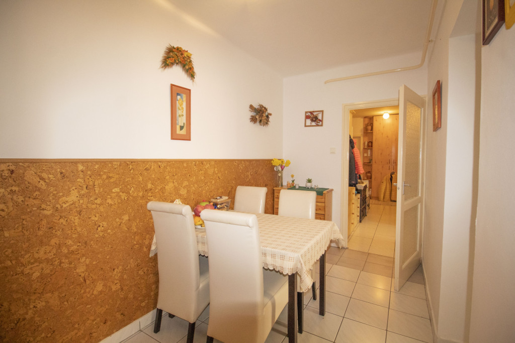 Elrendezése családoknak is kiváló, tágas előtérbe érkezünk meg, mindhárom szoba önállóan megközelíthető az előtérből, külön étkezővel rendelkezik a lakás, a wc és a fürdőszoba külön helyiségben található, az erkély is kényelmes méretű.