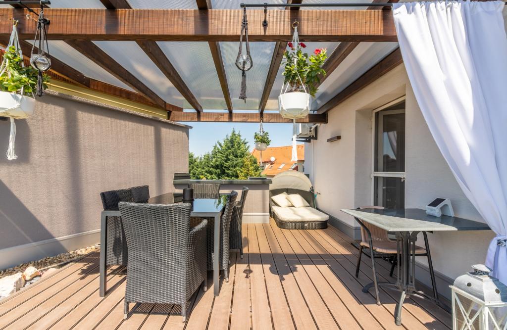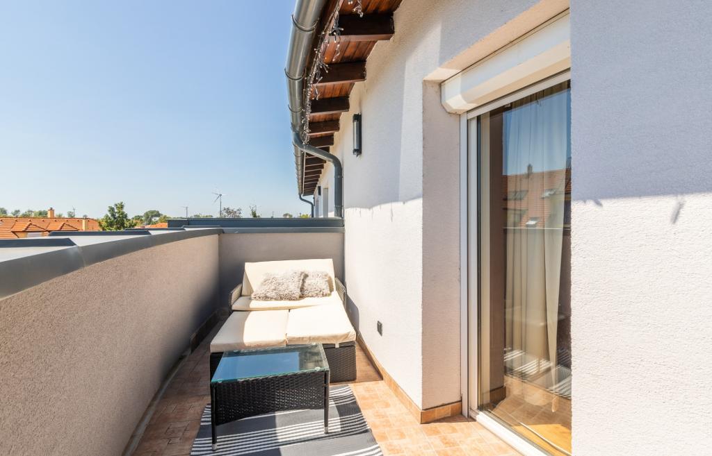 A penthouse lakás teraszáról csodálatos panorámakilátás tárul elénk. Az ingatlan vételára tartalmaz 1 db fedett gépkocsibeállót is. Külön megállapodás keretében a lakás alatt eladó még egy 25 nm nagyságú garázs is.