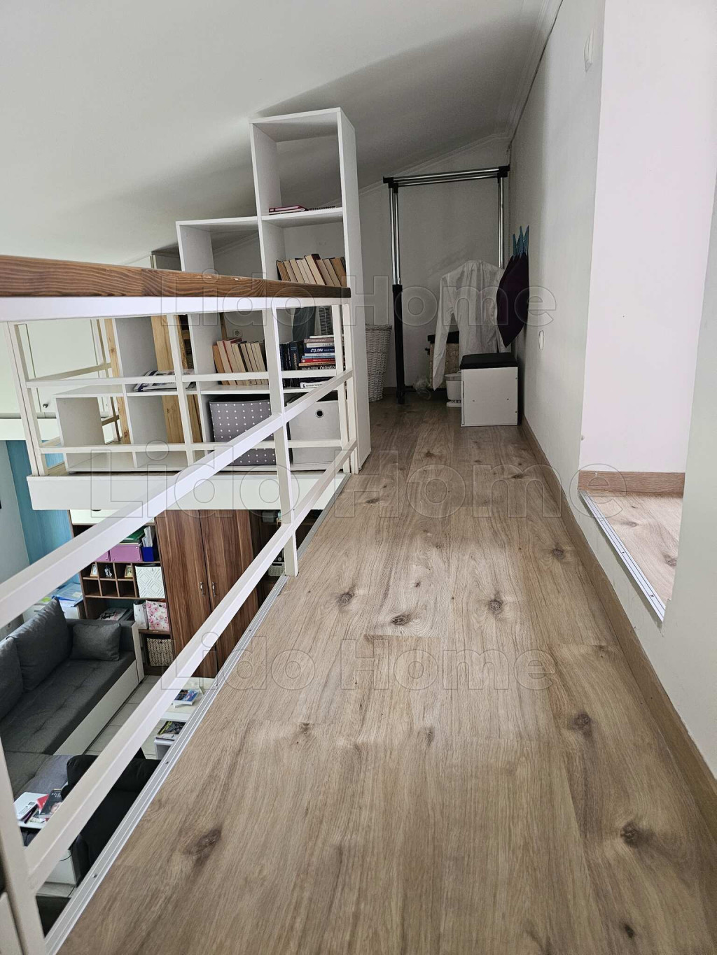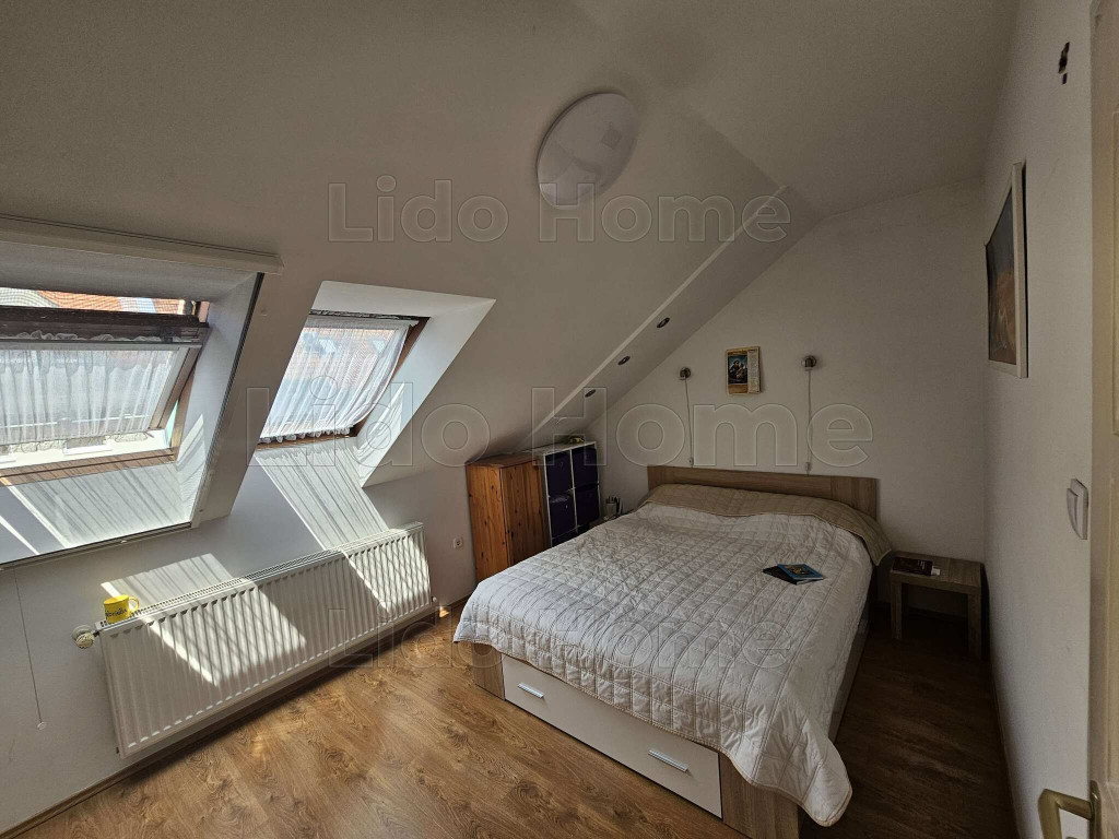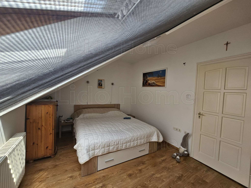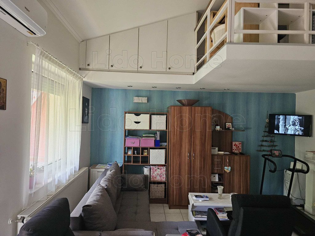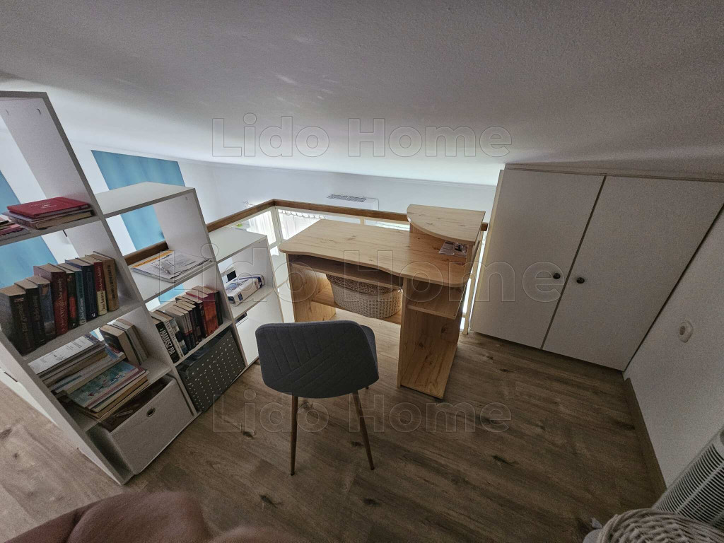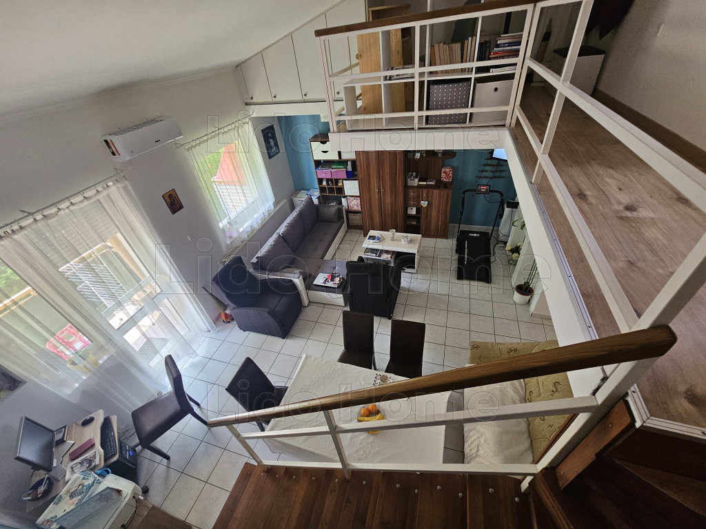 A tulajdonos gondosan átgondolt kialakításának és beépített bútorainak köszönhetően rendkívül barátságos kis otthonná varázsolta azt. A terek világosak. A lakásba belépve egy előszobába lépünk, innét minden helyiség elérhető, konyha kicsi de praktikus, szoba, fürdőszoba sarokkáddal, Wc, kis tároló, és egy élhető nappali étkezősarokkal, innét nyílik az erkély, mely a kertre néz, szépen gondozott, és szintén a nappaliból vezet fel lécső a galériába is. Itt közlekedő, végében kis dolgozósarok lett kialakítva, lépcső mellett pedig egy kis szoba mellette WC, itt akár még egy kis zuhanykabin is kialakítható a nagysága miatt. Szobákban, nappaliban konyhában beépített bútorok a lépcső alatti rész is nagyszerűen kialakított tárolónak van kialakítva.