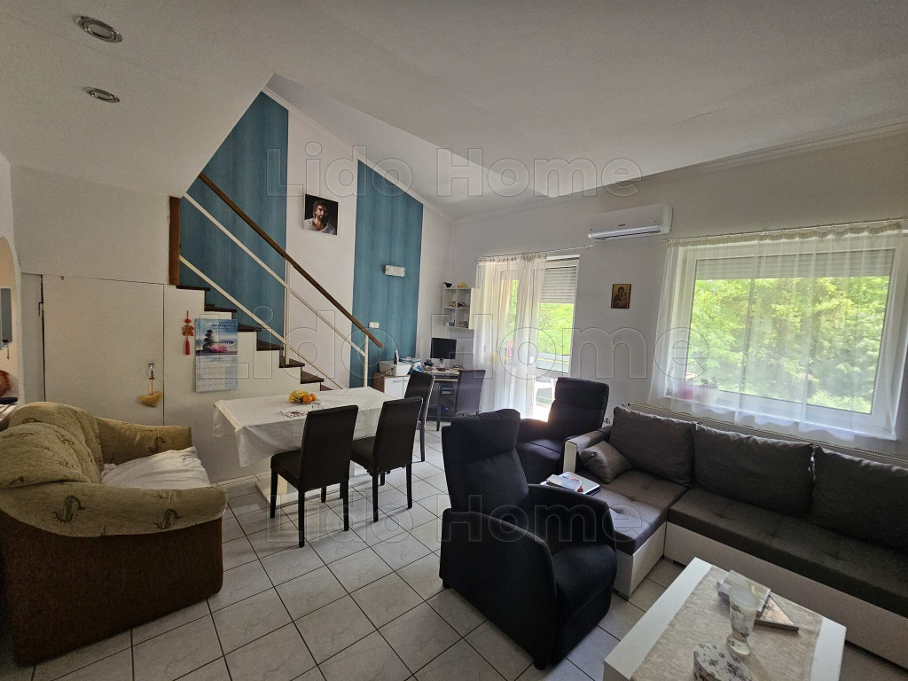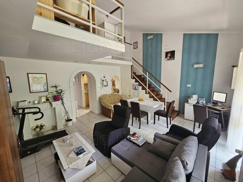 4 lakásos társasházban épült, nettó 61 nm-es, bruttó 71 nm-es, belső két szintes, 1. emeleti erkélyes lakás