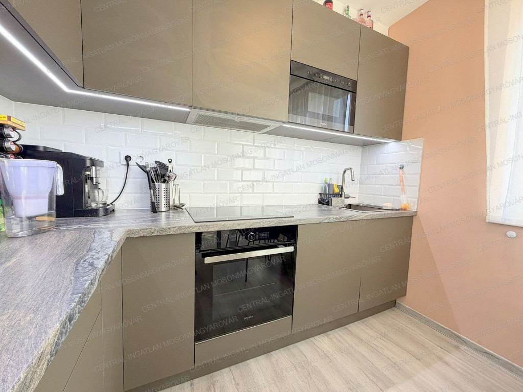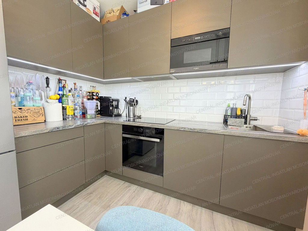 A 2023-ban elkészült, 2 szobás lakás, teljesen bútorozva, beépített bútorokkal és beépített konyhagépekkel vásárolható meg.