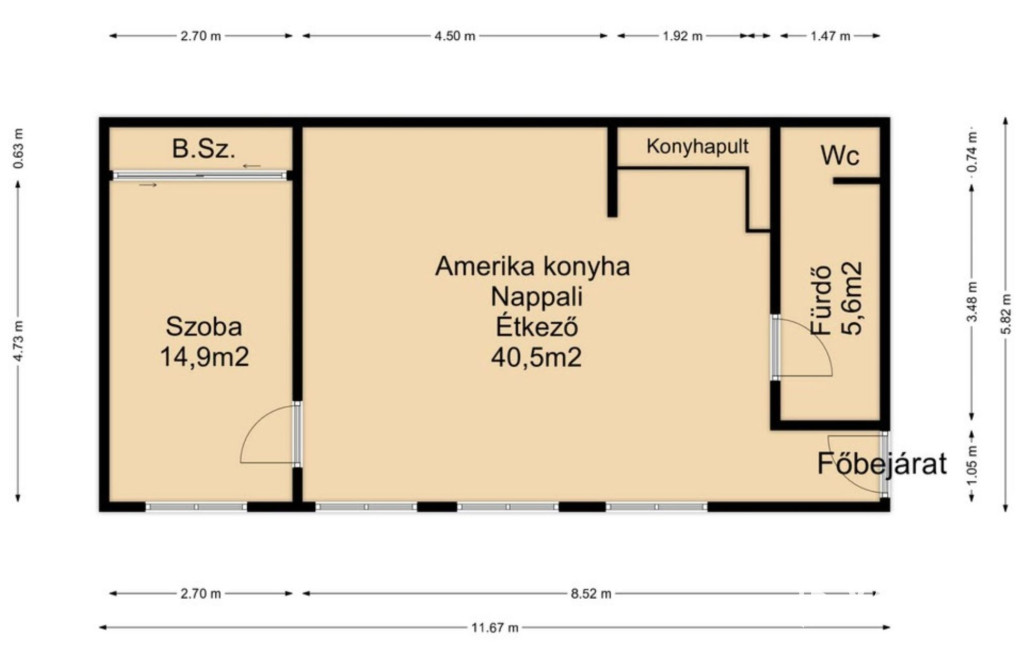 - Alapterület 61 m2