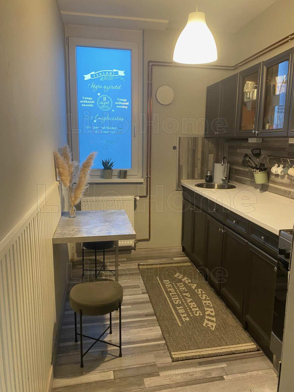 -a konyha és a fürdőszoba teljesen megújult, modern burkolatokkal és igényes kialakítással.