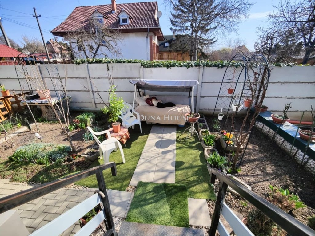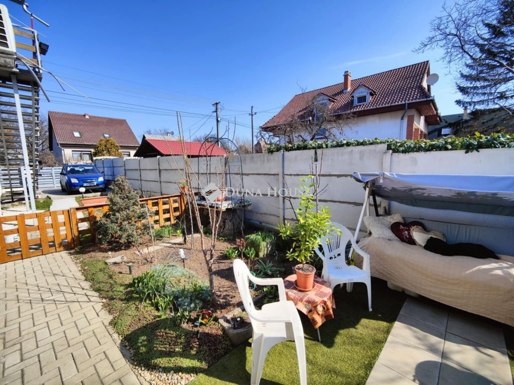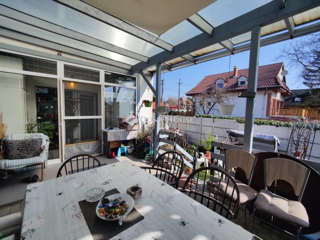 A 21-nm-es fedett terasz beépíthető a kis kertrész, tavasztól őszig jól kihasználható.