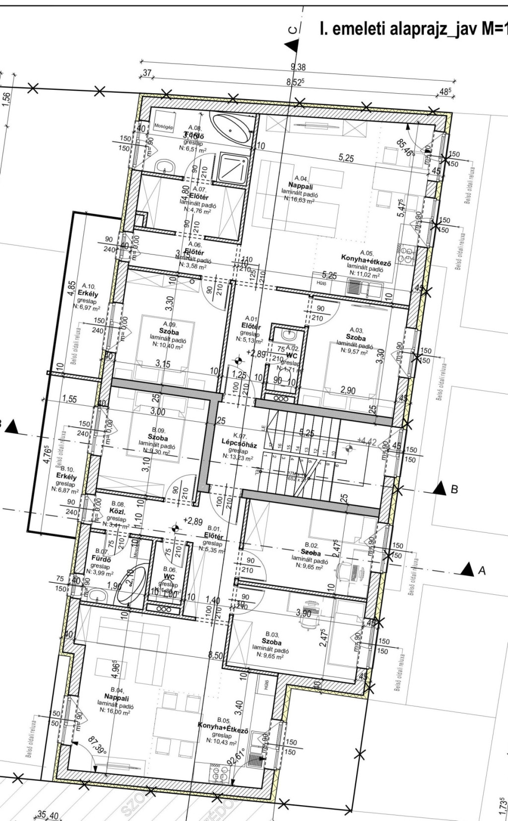 Az első és második szinten is 2-2 lakás lesz kialakítva.