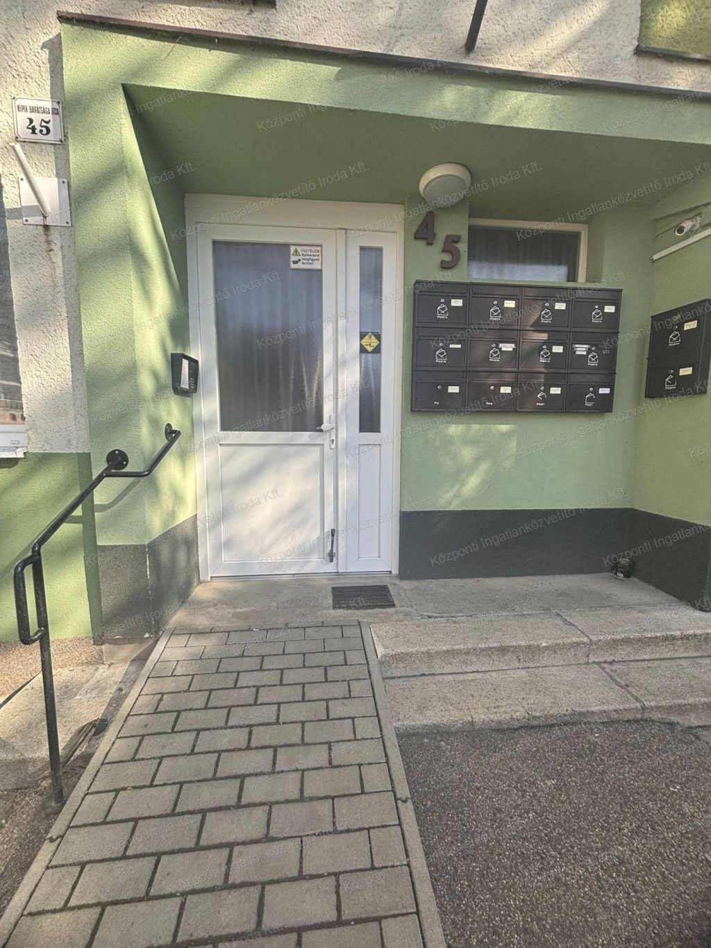 A társasház tiszta, rendezett, a lépcsőház kamerával felszerelt, mindez a lakóközösség összetartását igazolja.