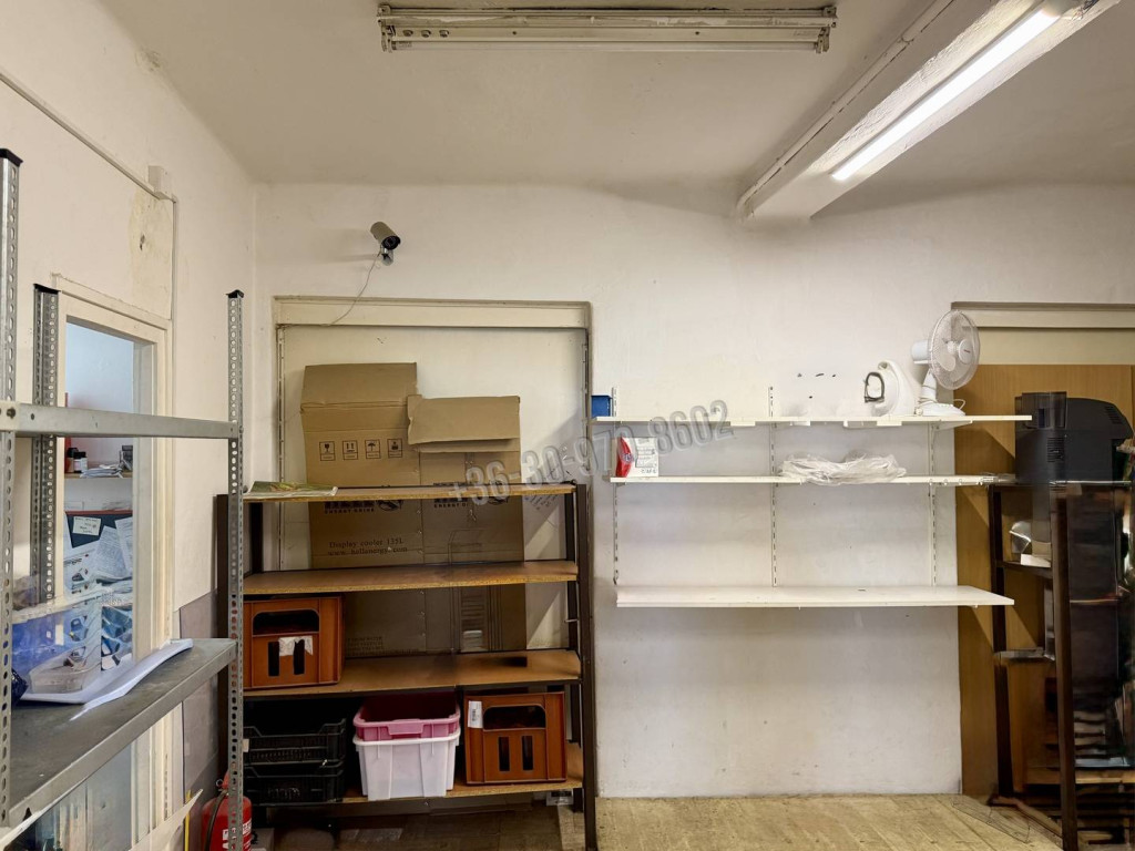 Jelenlegi elrendezését tekintve 2 nagy helyiség/eladótér/szoba és egy félszoba mely jelenleg irodaként használt. Mellékhelyiség és és pici konyha van kialakítva, de fürdőszoba jelenleg nincs külön kialakítva.