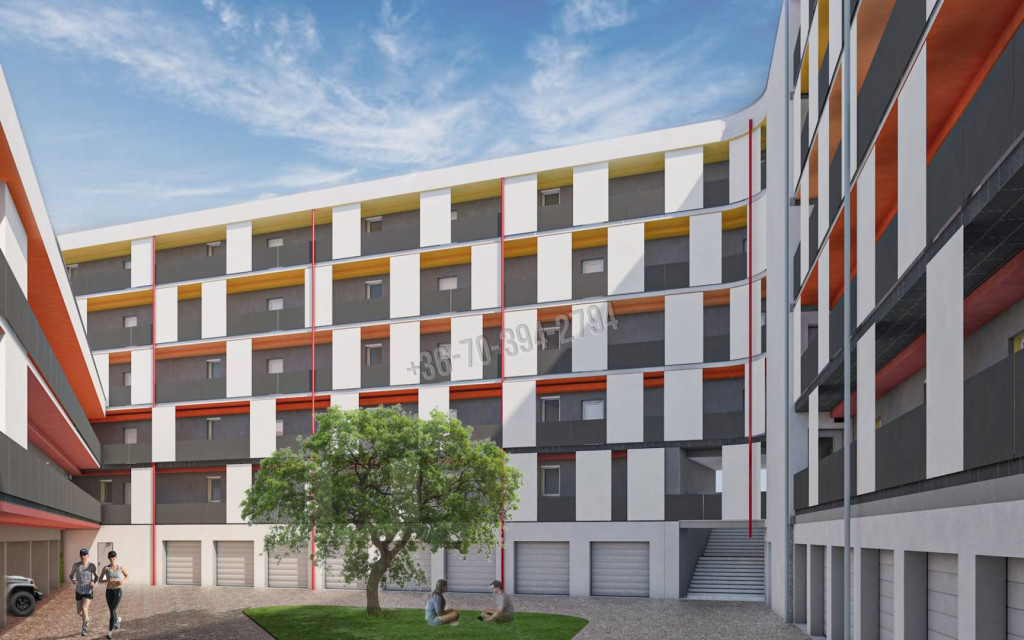 • 81 darab 27 m2 és 86 m2 közötti alapterületű lakás erkéllyel vagy kertkapcsolattal