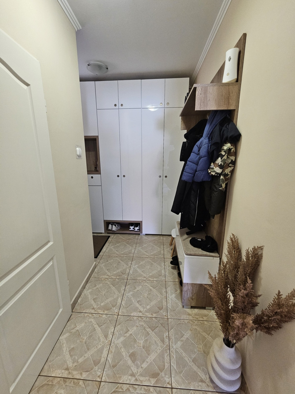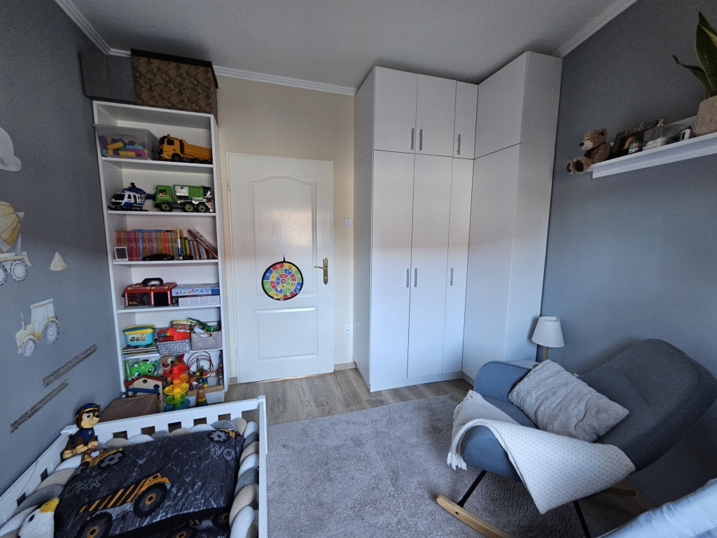 A lakás nappaliból és két külön nyíló szobából áll, így kényelmes életteret biztosít akár család számára is. A jól használható konyha, a fürdőszoba, a külön WC, valamint a kamra praktikus megoldásokat kínálnak a mindennapokban. Az előszoba rendezett, jól szervezett közlekedést biztosít a helyiségek között. Az ingatlan ízlésesen felújított, költözésre kész állapotú.