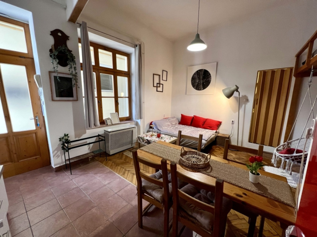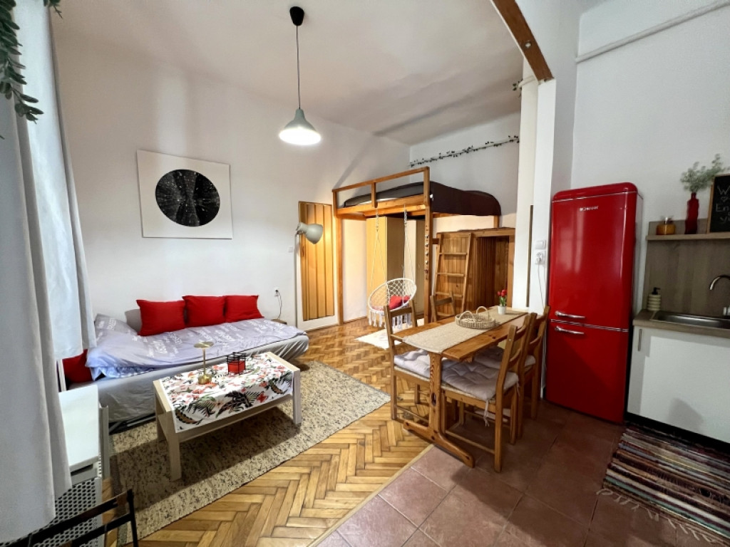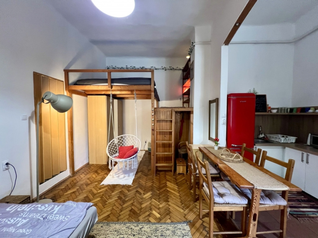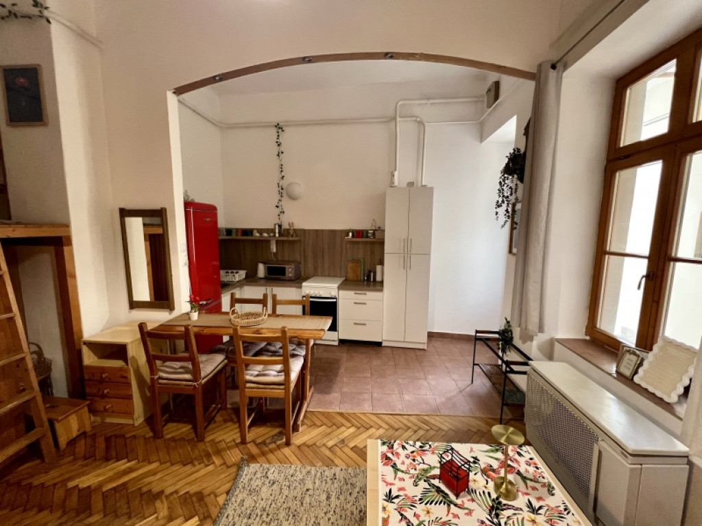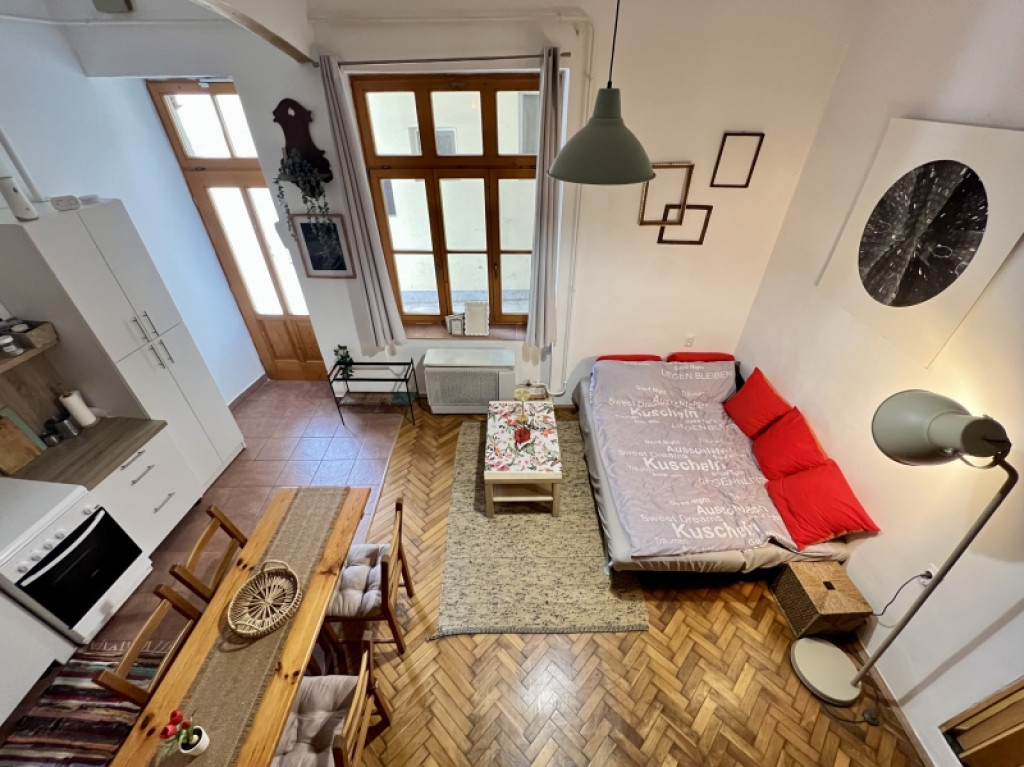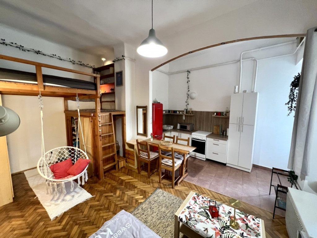 Eladásra kínálunk Pécs-Belvárosban, a Dr. Majorossy Imre utcában egy 36m2-es szép állapotú, különleges galériás téglaépítésű garzonlakást, tetőtér beépítési lehetőséggel. Hogy miért különleges? Itt élt Lázár Ervin!Helyiséglista: nappali+ konyha, galéria, fürdőszoba+ WC.