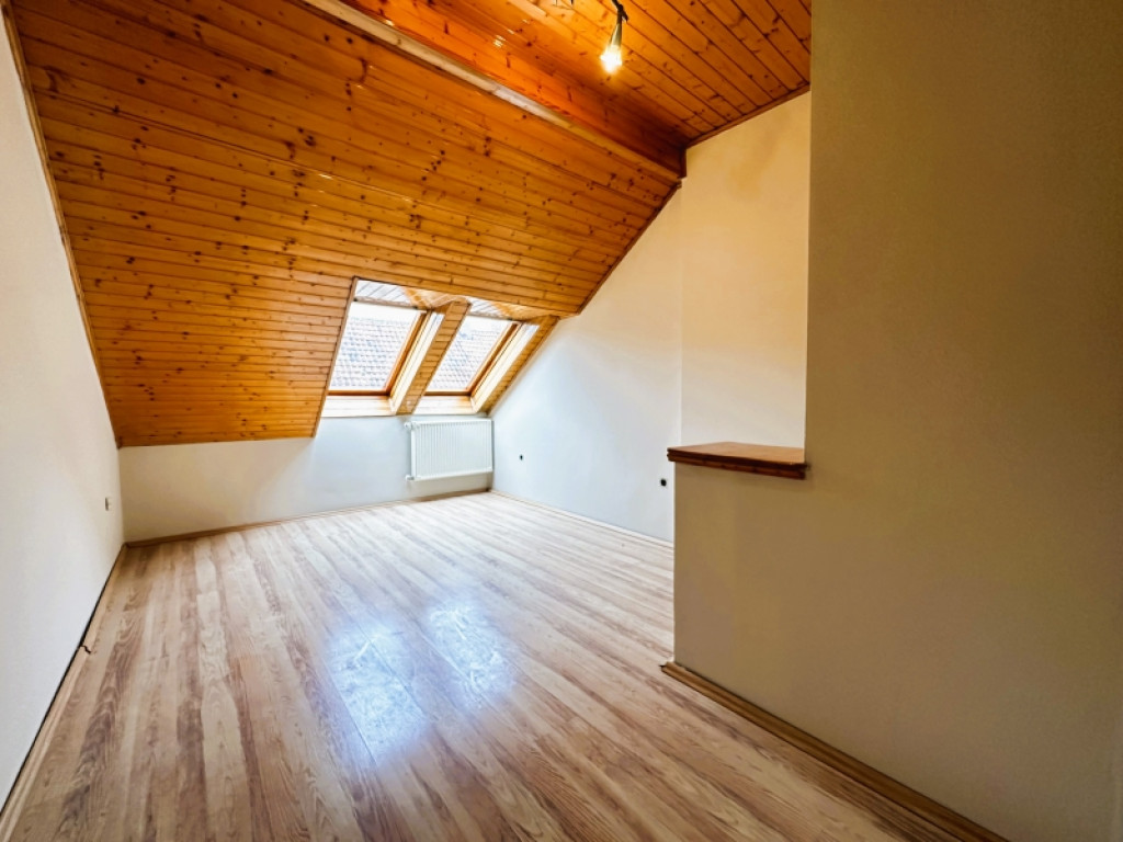Pécs történelmi belvárosában a egy zárt udvarral rendelkező társasházban eladó nettó 70m2-es tetőtéri lakás.A lakás elosztása kiváló.