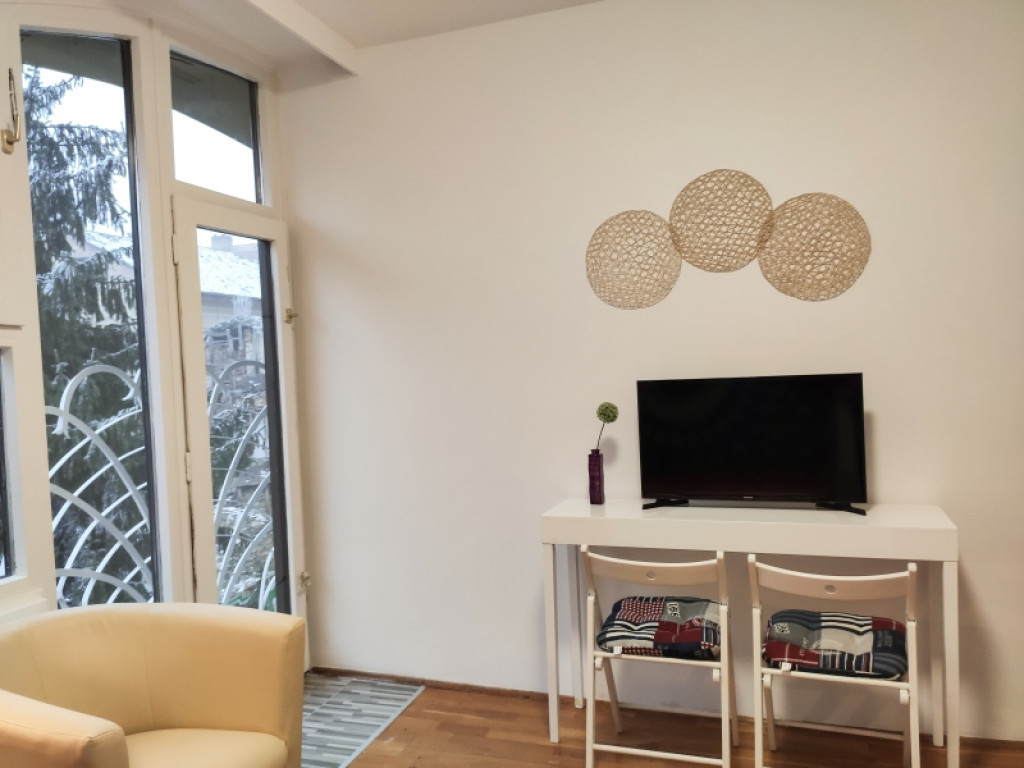 Amerikai konyhás nappali, szoba, fürdőszoba + WC.