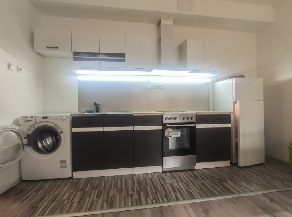 Amerikai konyhás nappali, szoba, fürdőszoba + WC.