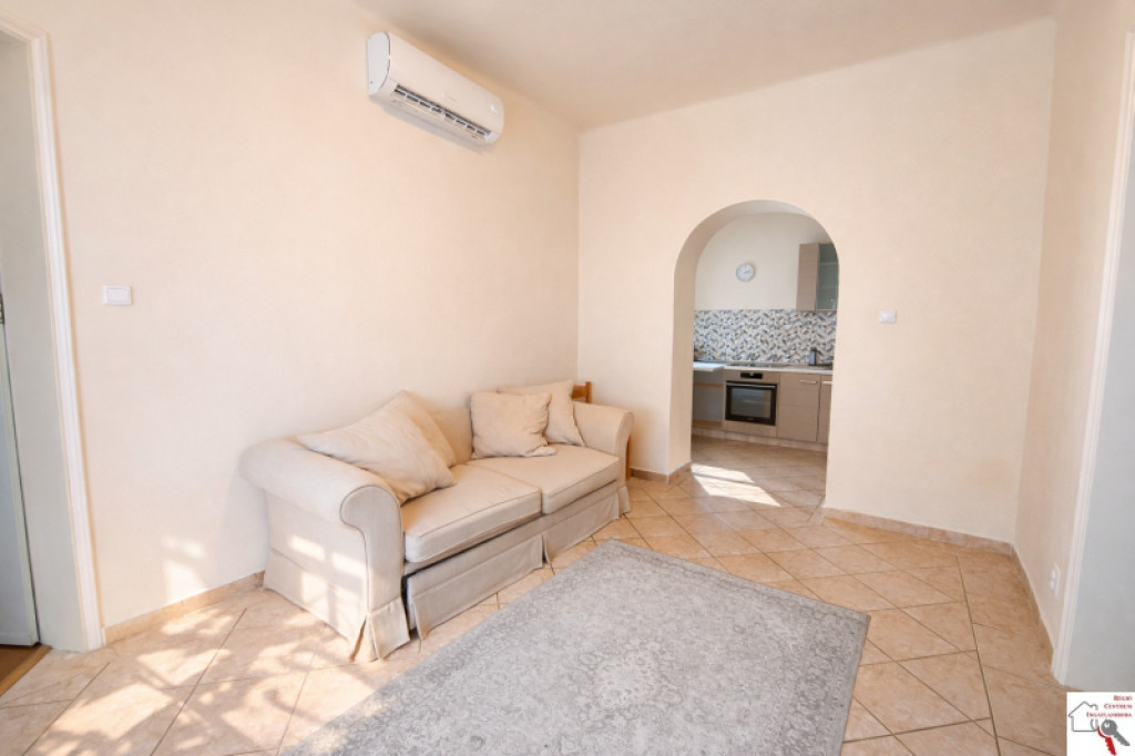 Eladó felújított 1,5 szobás tégla lakás Pécsett a belváros csendes utcájábanPécsett, a Kórház tér közelében összközműves telken álló, 47 m2-es, másfél szobás, nyugati tájolású, napfényes, kifogástalan állapotú, klimatizált, trendi kis tégla lakás eladó. Az ingatlan előszobából, egy amerikai konyhás nappaliból, egy hálóból, valamint fürdő-wc helyiségekből áll. Korábbi felújítása során a lakást mind villany, mind vízhálózat tekintetében átvezetékelték, új műanyag nyílászárókat, biztonsági bejárati ajtót, beltéri ajtókat, gépesített konyhabútort (főzőlap, elektromos sütő) építettek be, valamint radiátoros gáz-cirkó fűtést alakítottak. Előzőeken túl újszerű hideg és meleg burkolatok is jellemzik ezt a jó helyen lévő és jól élhető lakást, mely első lakásnak vagy befektetésnek egyaránt kiváló lehetőség. A lakáshoz beépíthető tetőtér, tágas pince, valamint egy kb. 12 m2-es kert kapcsolat is tartozik.