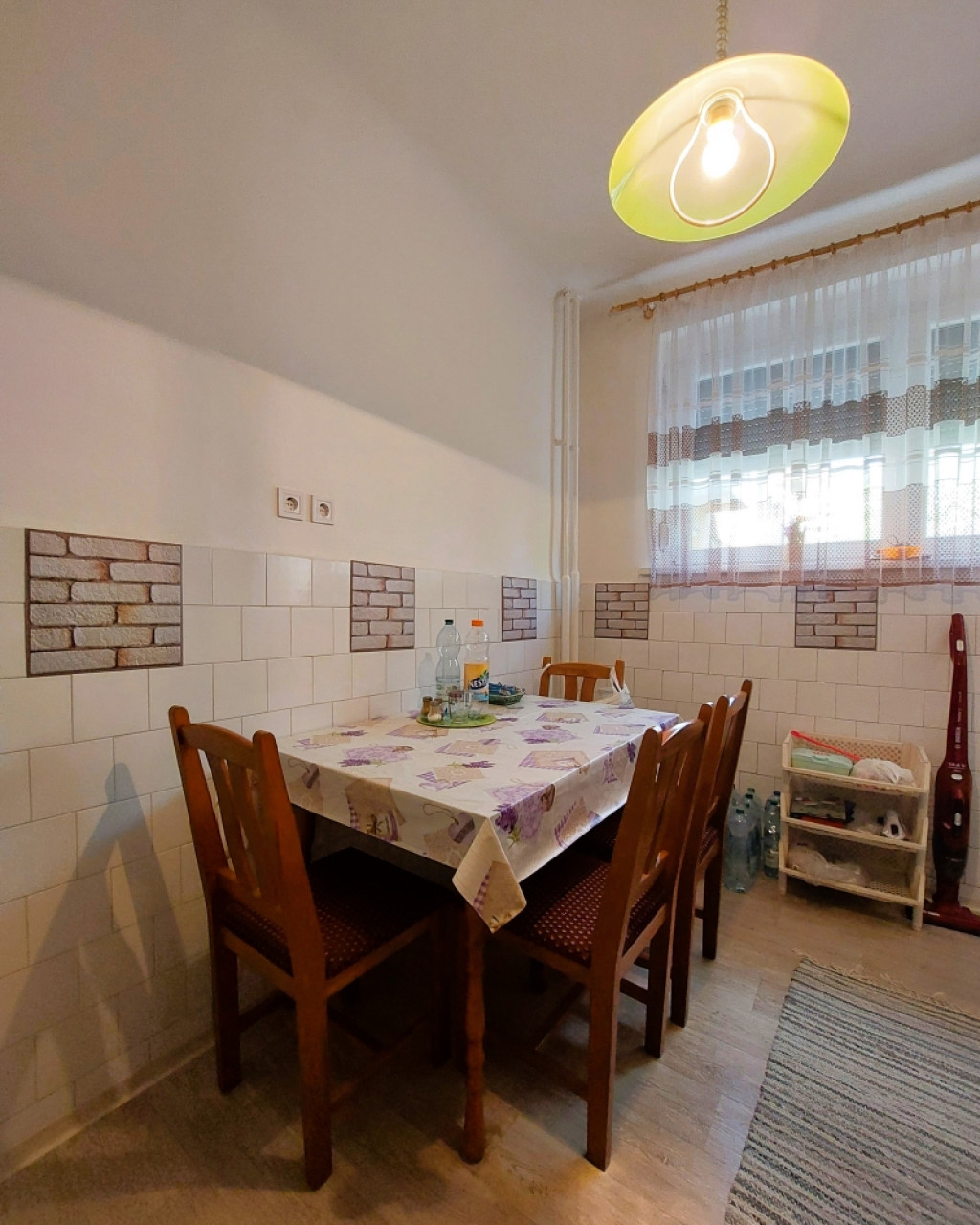 A lakás praktikus elrendezésű, világos és tágas terekkel rendelkezik. A szobákban laminált padló, a többi helyiségben linóleum található.