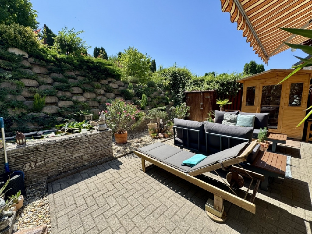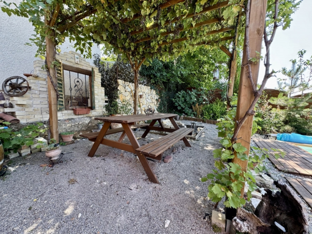 A kertben szebbnél szebb növényekkel van beültetve,igazi mediterrán hangulatot teremtve. A kerti részről csodás Mecseki panorámában gyönyörködhet az új tulajdonos.
