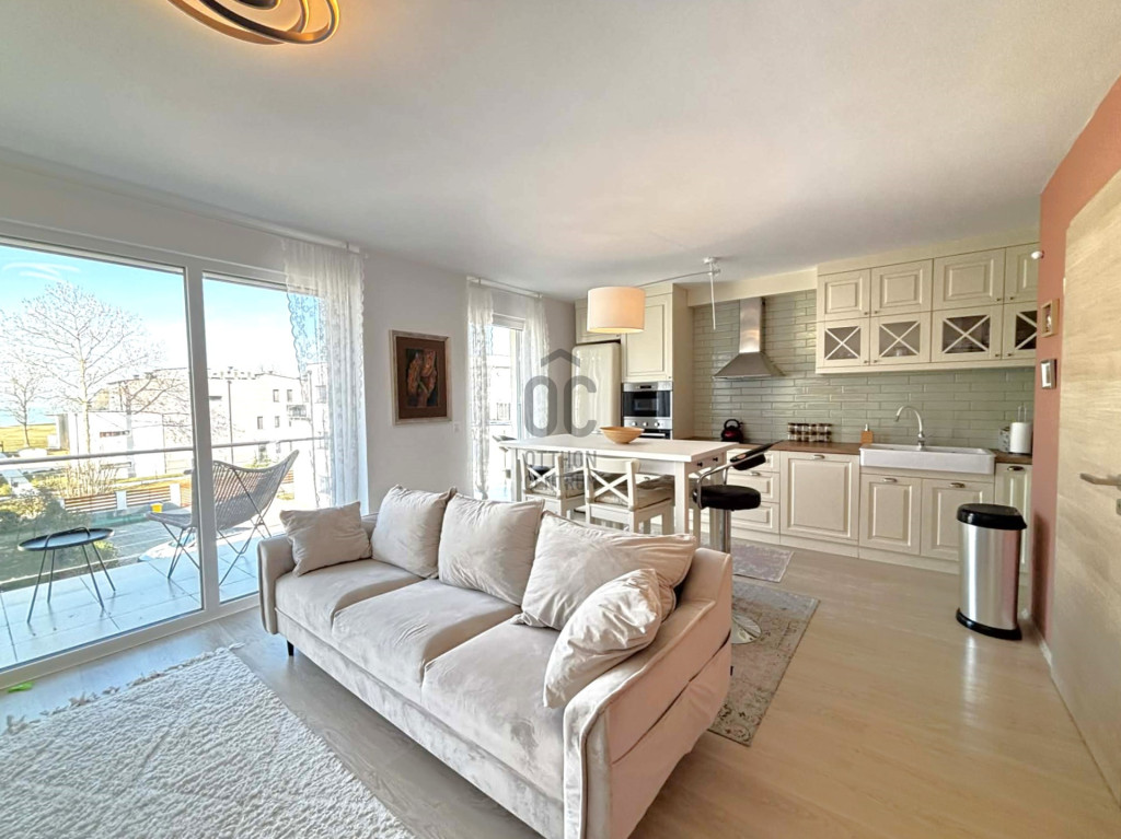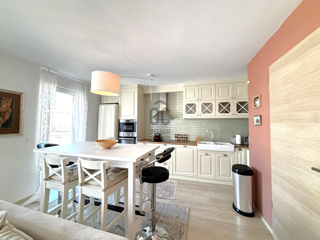 A lakás szívében egy tágas nappali helyezkedik el, amely az amerikai konyhával egy légtérben található, így a baráti összejövetelek és családi vacsorák tökéletes színhelyévé válik.