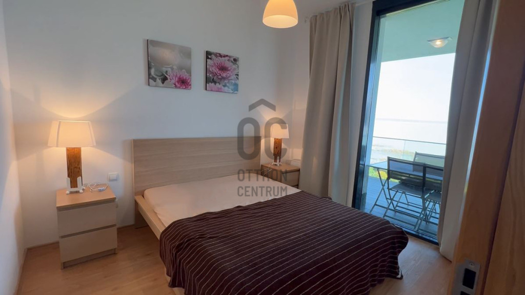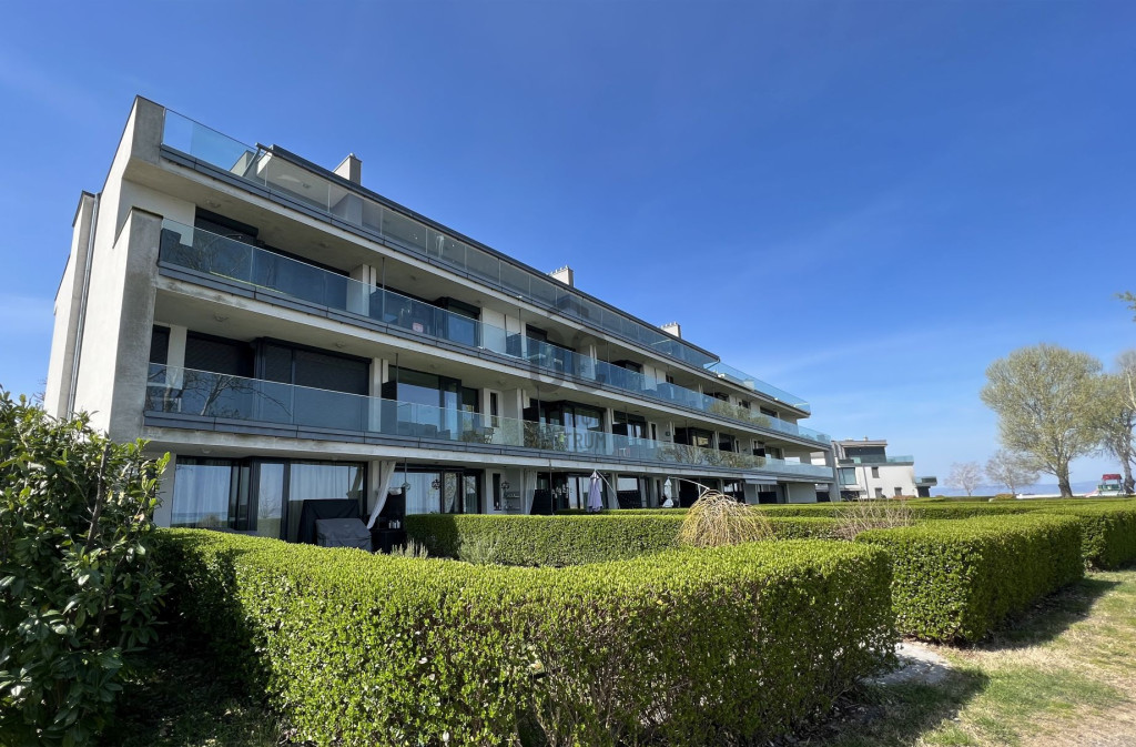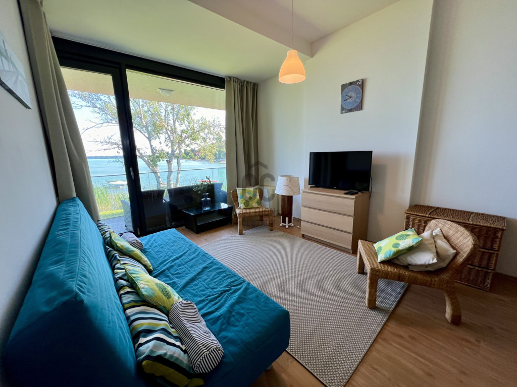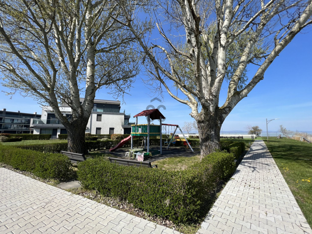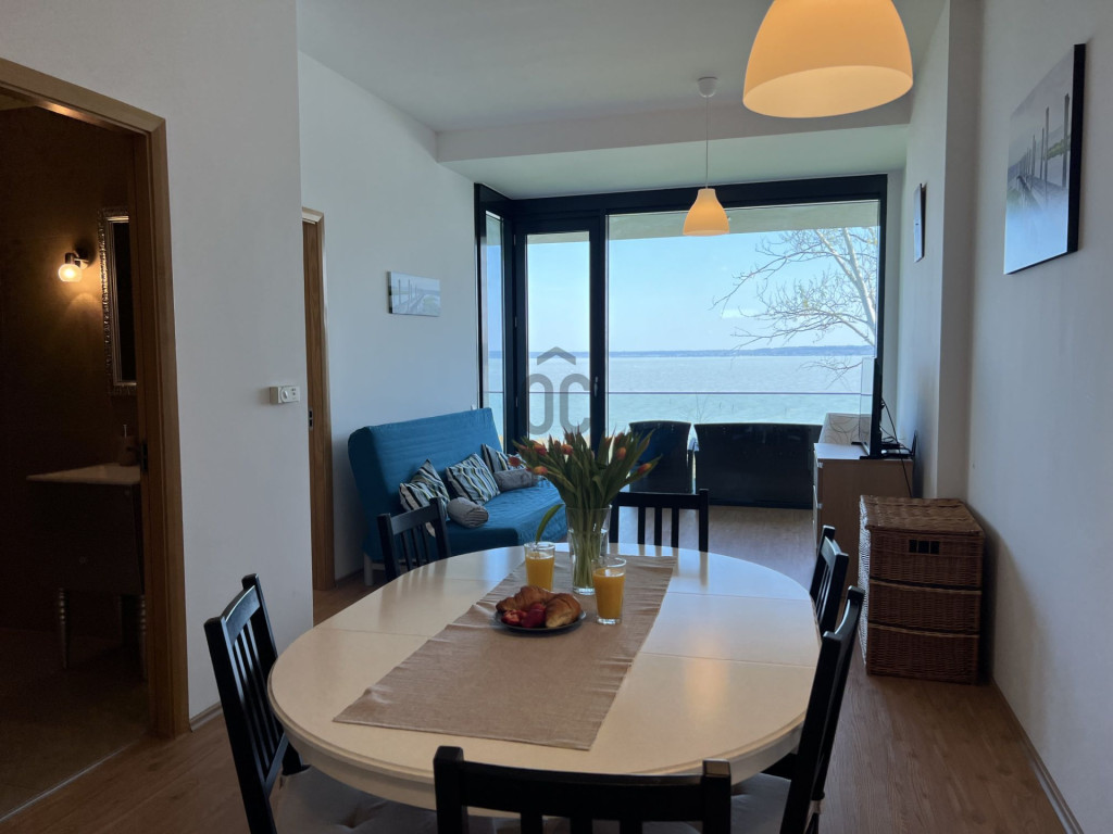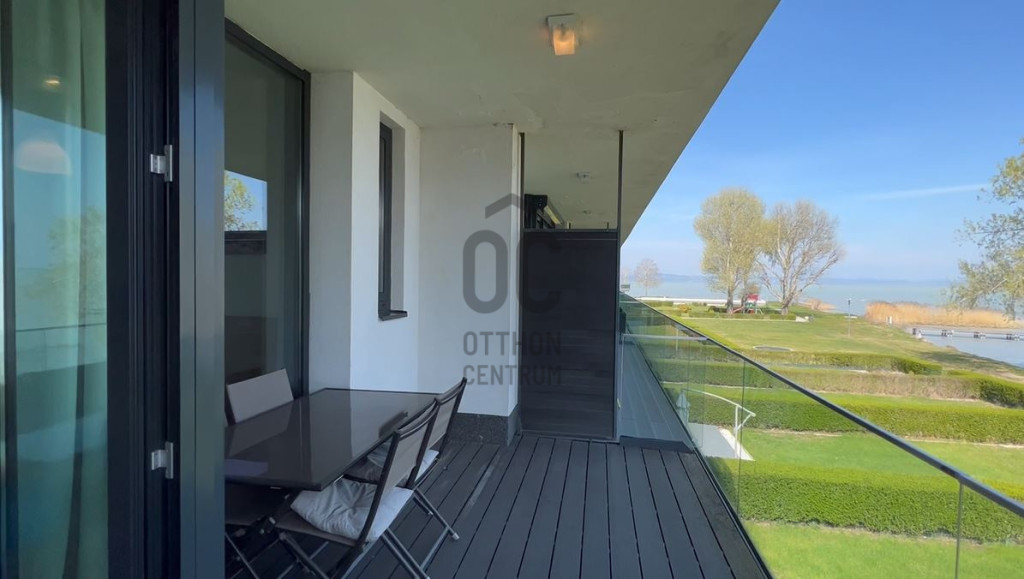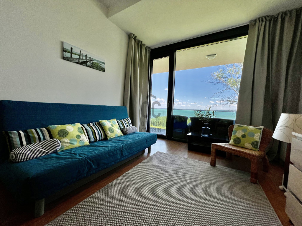 A lakás kiváló minőségű társasházban található, közvetlenül a Balaton partján, festői környezetben.