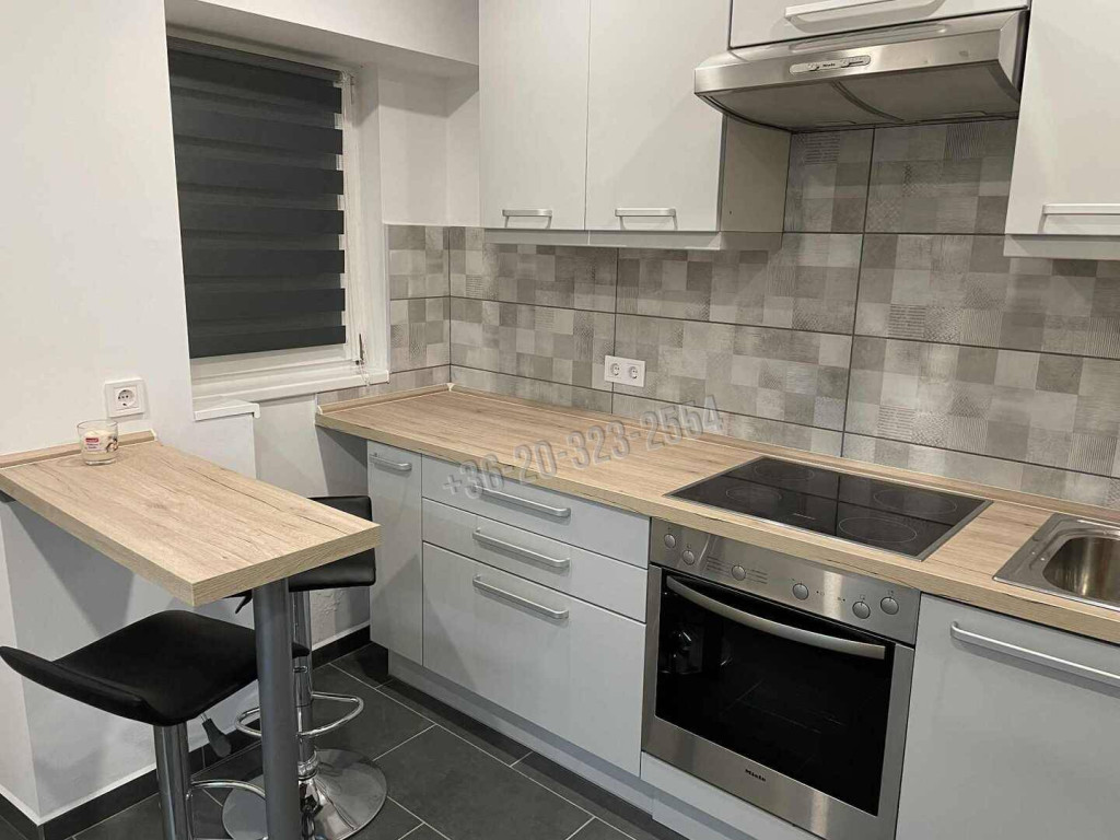 • modern, teljesen felszerelt konyha: beépített sütő, főzőlap, mosogatógép, hűtő