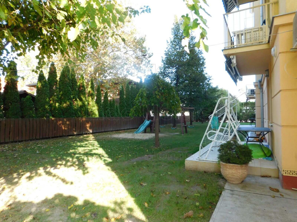-A társasház kertjében egy nagy méretű, fedéssel is ellátott medence szolgálja a lakók nyaralását, továbbá kerti grill, fedett pergola, gyermek játszótér is található